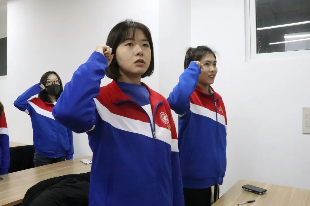 会议最后,团支书带领同学们重温入团誓词并进行宣誓。