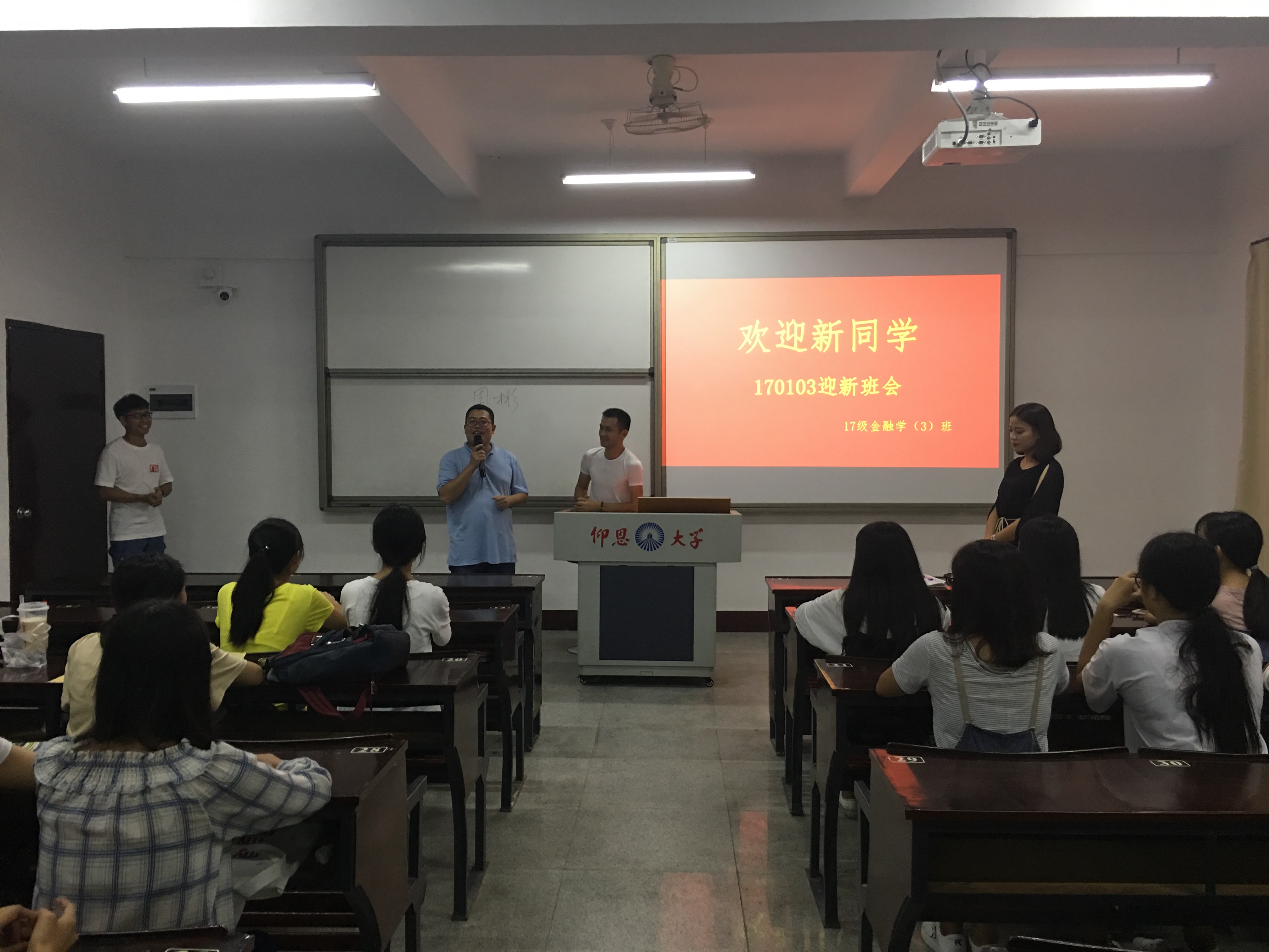 9月12日晚,我院17级新生班级于仰恩楼固定班级各自开展了首次班会。班会由各班班主任和班导主持召开,我院党总支书记兼副院长吴晓伟老师亲临并送上亲切问候。