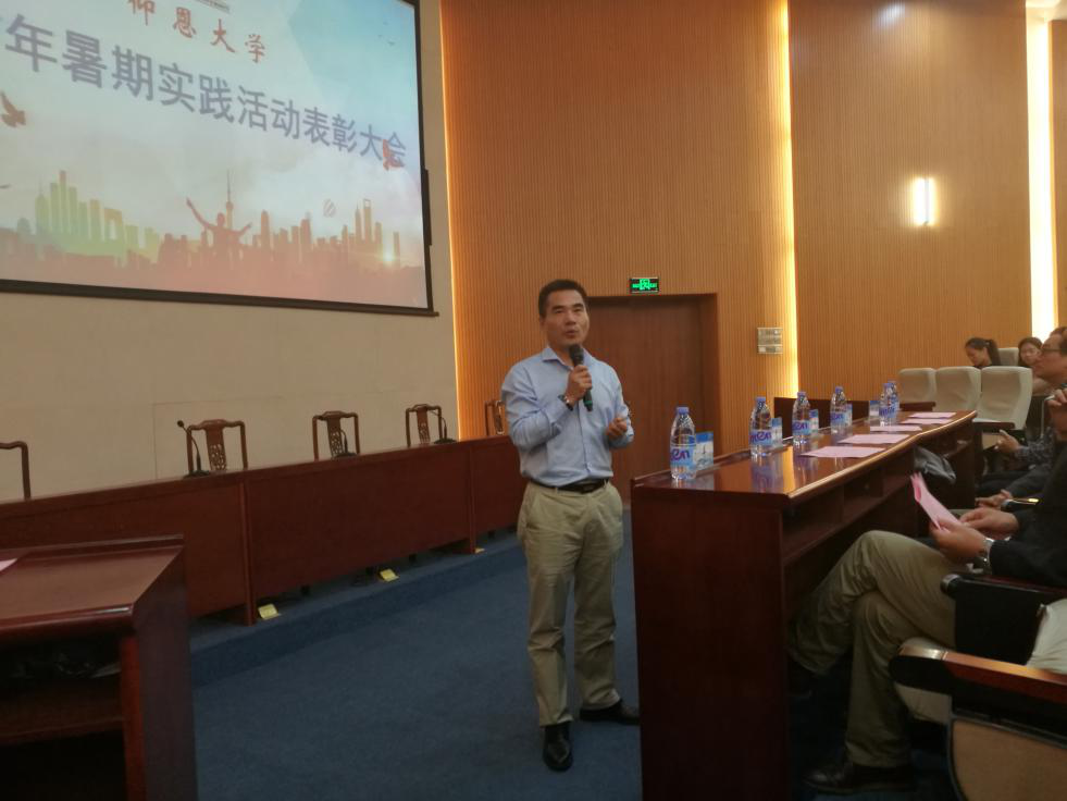 随后,曹流宣读了《关于表彰beat365官方网站2017年暑期实践活动先进集体和个人的决定》。校领导分别为获表彰的集体和个人颁奖。其中,我院共有3支队伍获校级优秀团队奖,31名实践队员获校级先进个人奖,指导老师刘志华获得“优秀指导老师”称号,同时,我院还一举斩获“优秀组织奖”。
