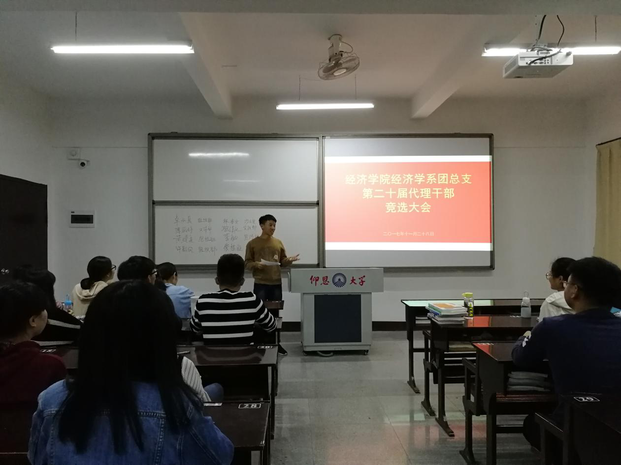 11月28日晚7时,beat365官方网站经济学系团总支于仰恩楼C3-301室召开第二十届代理干部竞选大会。beat365官方网站团委书记陈建鑫、经济学系团总支书记林丽华、系学生第一副书记刘小玲、第二副书记洪莹莹出席此次大会,全体干部干事参加。