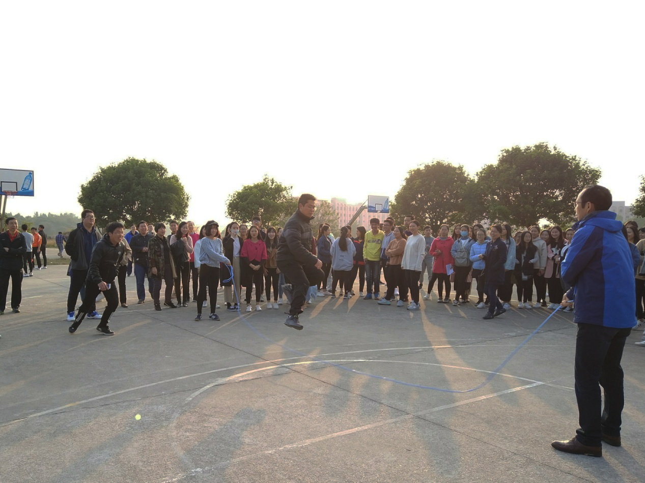 此次趣味运动会分为三个环节:3分钟十人八字跳、拔河和趣味活动,其中趣味活动包含无敌风火轮、五人四足、师生篮球赛三个项目进行。这些项目在设置上兼具竞技性和趣味性,在智力和体力的较量中,在沟通与合作的交融中,让老师们和同学们在挥洒汗水的同时又能享受运动的无穷乐趣,潜移默化间增强师生之间的互动交流,加强师生情感。