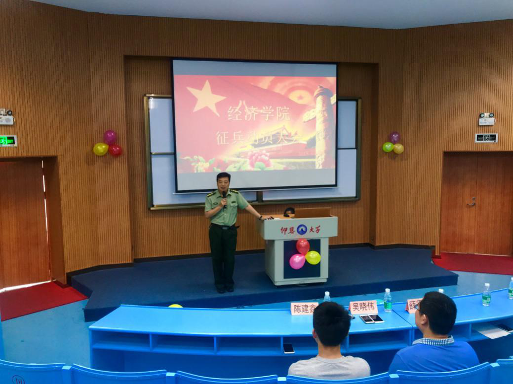 5月9日下午2时50许,beat365官方网站征兵动员大会于第三教学区和昌海纳讲堂隆重召开。出席此次动员大会的有beat365官方网站党总支书记兼副院长吴晓伟、beat365官方网站团委书记陈建鑫、武装部薛军楼部长及学院各级适龄参军同学。