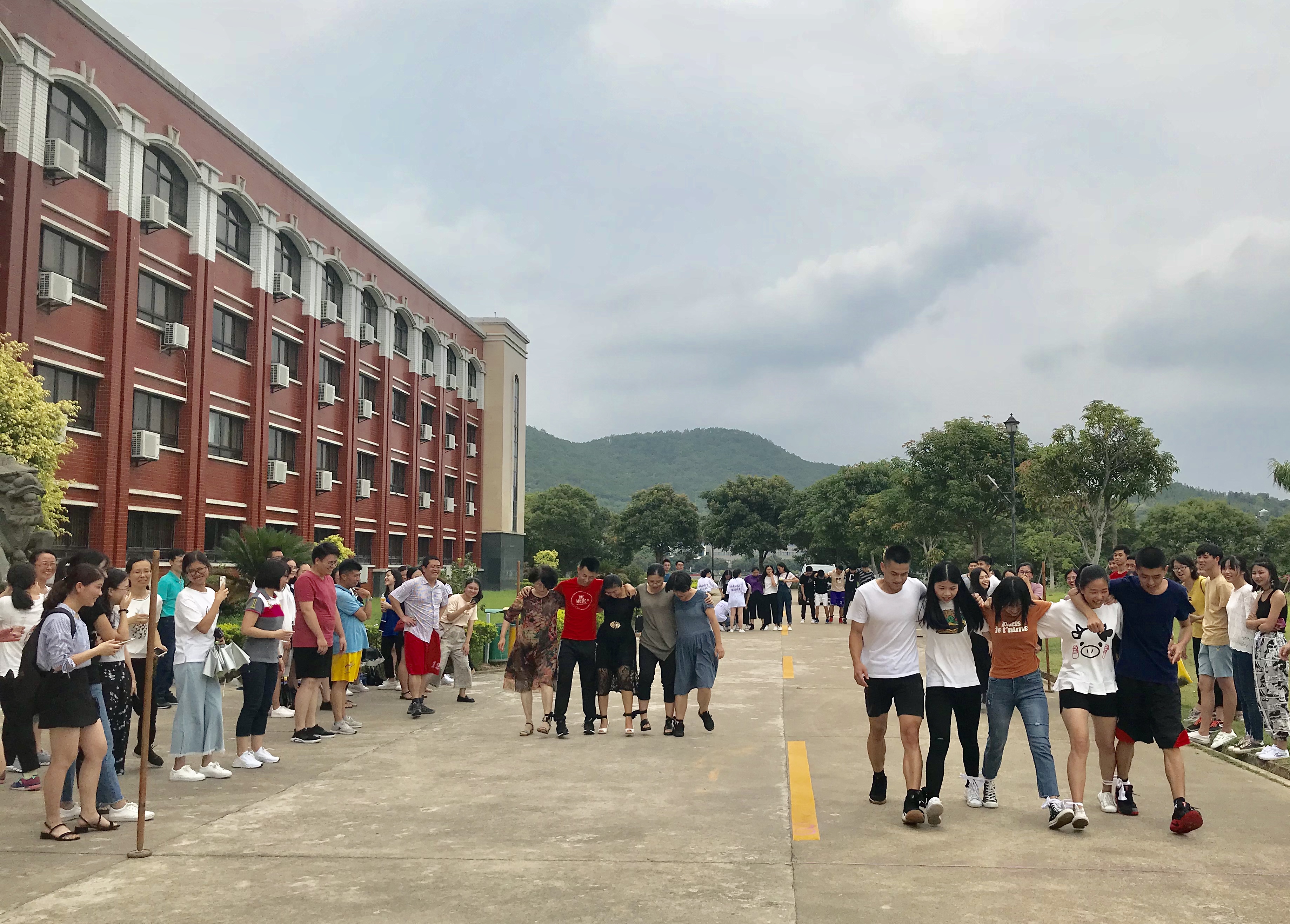 尽管烈日炎炎,现场人头攒动情绪高涨,各支队伍皆跃跃欲试,充分做足热身准备,争分夺秒练习比赛项目。在50米迎面接力赛中,选手们紧握接力棒,似离弦之箭向前冲刺,加油呐喊声此起彼伏,接力棒的交接牵引着全体观众的心。比赛过程中出现掉棒失误选手,其余队员不甘示弱,奋起直追。经过两个回合排名比赛,最终由用时最短的经济系取得项目第一。五人六足、趣味接力赛、穿越呼啦圈项目则考验师生协作默契。赛前,参赛选手摩拳擦掌,寻找加快速度、保持平衡的方法。比赛现场热烈激昂,加油声如潮水般一浪高过一浪,各支队伍精神抖擞,紧密配合,团结协作,奋勇争先。经过激烈的比赛后,师生欢声笑语其乐融融,于仰恩楼正门合照留念。
