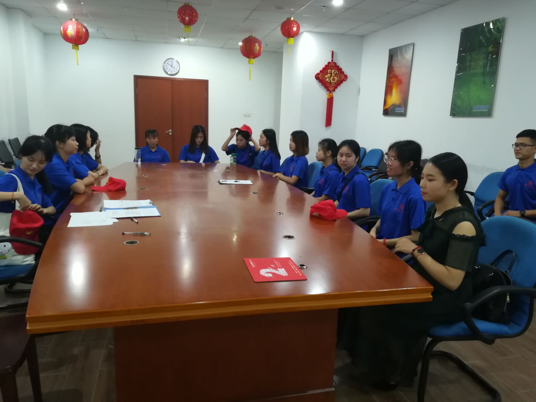 实践队伍到达华福证券,市场总监助理蔡前绍热情接待实践队,主持讨论业务交流会。蔡经理首先介绍营业务及实践过程规划安排。紧接着,在蔡经理的分配下,实践队员了解时下经济发展现状,分为四组前往华福证券的各个营业部开展为期三周的专业实践,主要负责文件编辑录入、业务电联问访等工作。