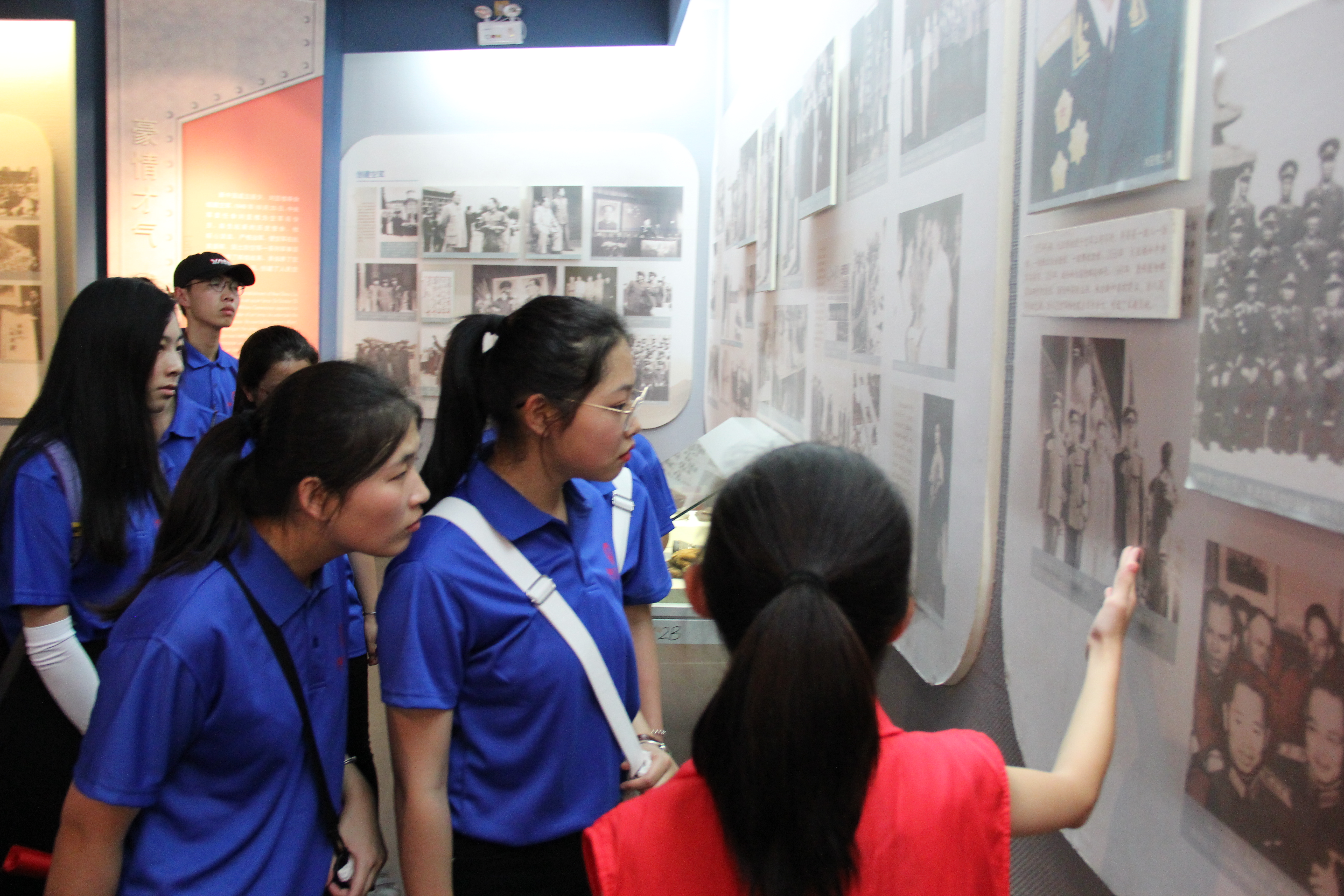 跟随解说员的脚步,实践一行人驻足细观馆内陈列的关于刘亚楼将军的壁画及其生前所用物品。通过解说员对刘亚楼将军生平的介绍,实践队一行人了解到刘亚楼将军是中国人民解放军上将,曾参与中央苏区五次反“围剿”斗争和二万五千里长征,对于刘亚楼将军为国征战南北的一生,实践队一行人纷纷表以敬佩之情。