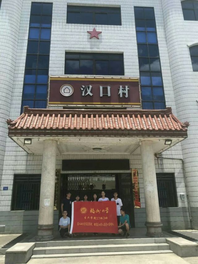 (图为福州大学生物工程学院科普服务实践队在汉口村村委会集体合照)