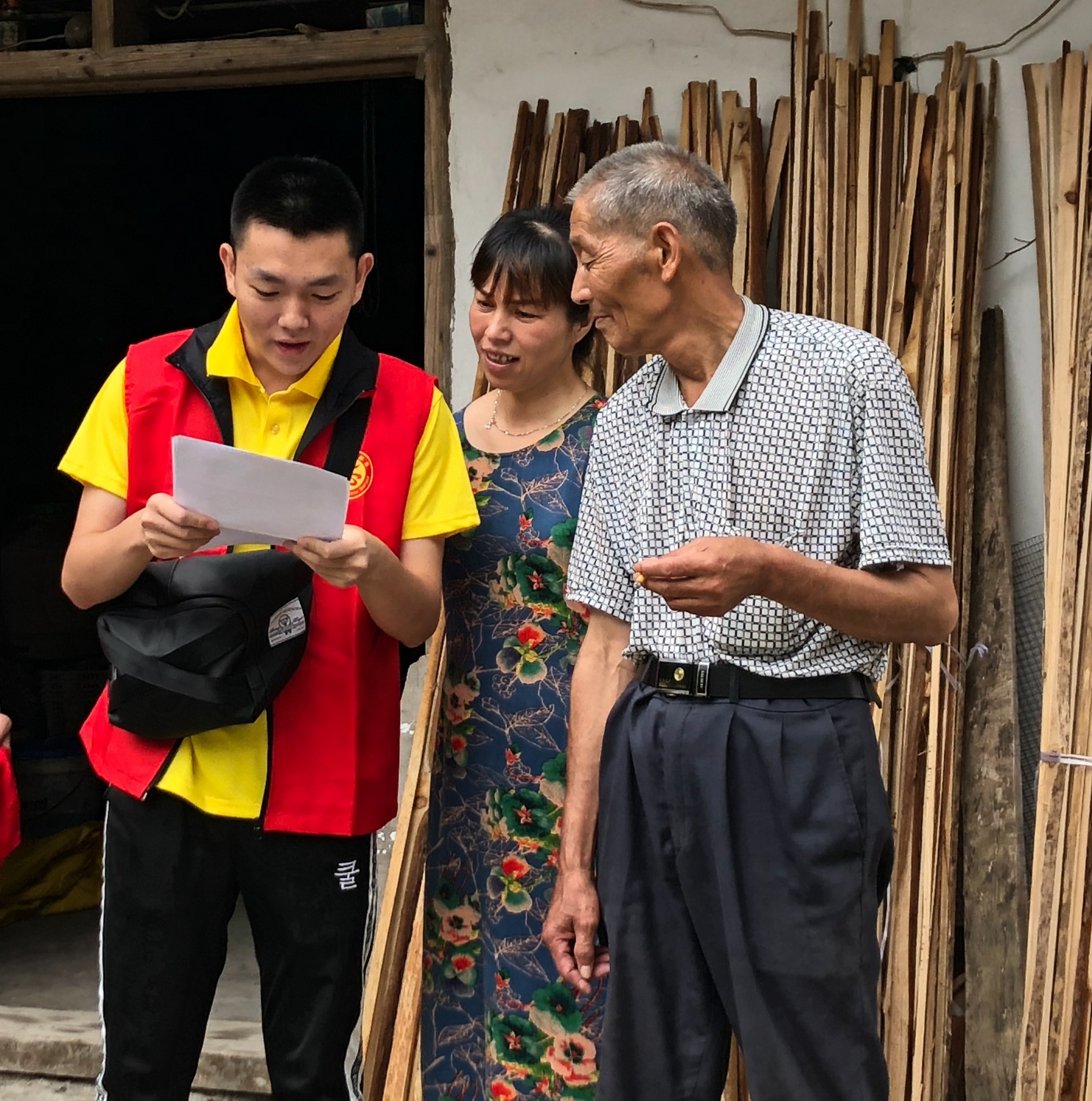 上午,由当地负责人带领实践队来到寨下村贫困户,实践队了解到几位老人的生活都来自于政府以及公益人士的帮助,生活较为困难。队员们到达贫困户家中帮忙做卫生,与老人聊家常,为老人普及养生知识,看到老人开怀的笑容,实践队更加坚定了关爱老年人的决心。