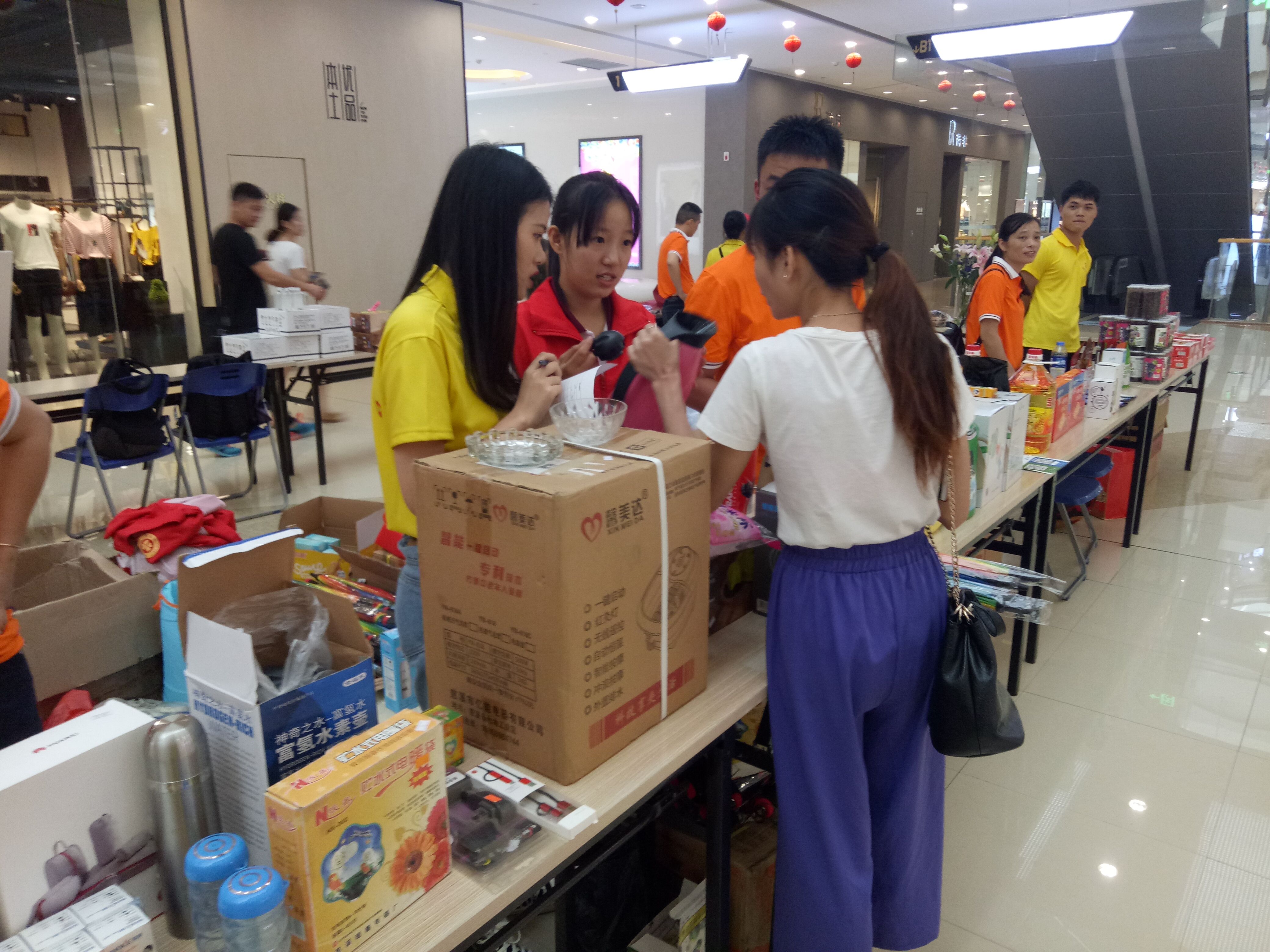 此次活动,实践队队员与县爱心社志愿者、富德生命人寿保险公司志愿者合作分成两部分,一部分作为引导员引领客户前往活动现场,另一部分作为销售人员进行商品销售。活动中,实践队员别出心裁的通过即兴表演、趣味比赛等方式得到路人市民的热烈响应,吸引众多商户购买赞助,为活动现场添加了一道独特的风景线。