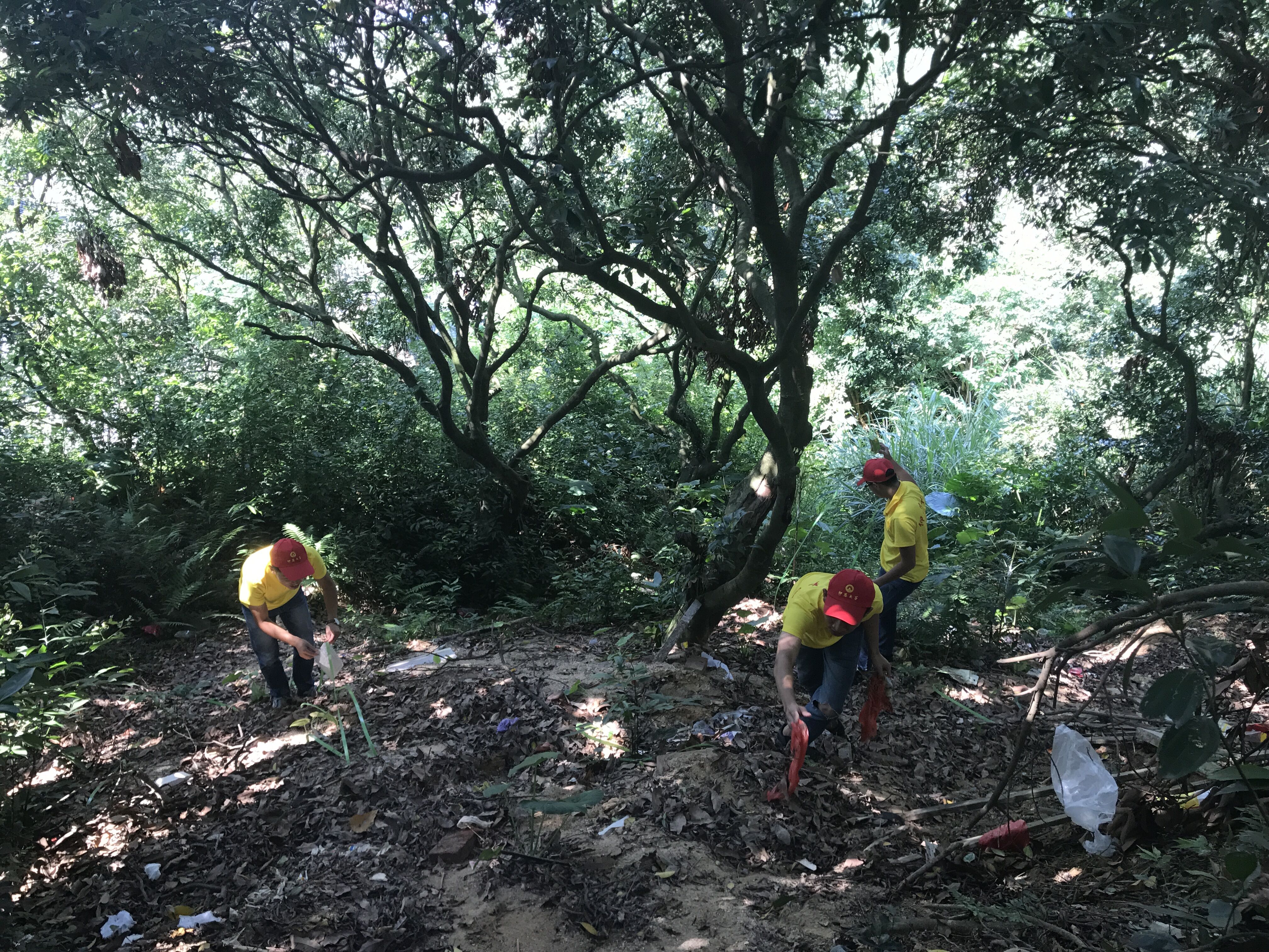 (图为实践队员进行垃圾清理)