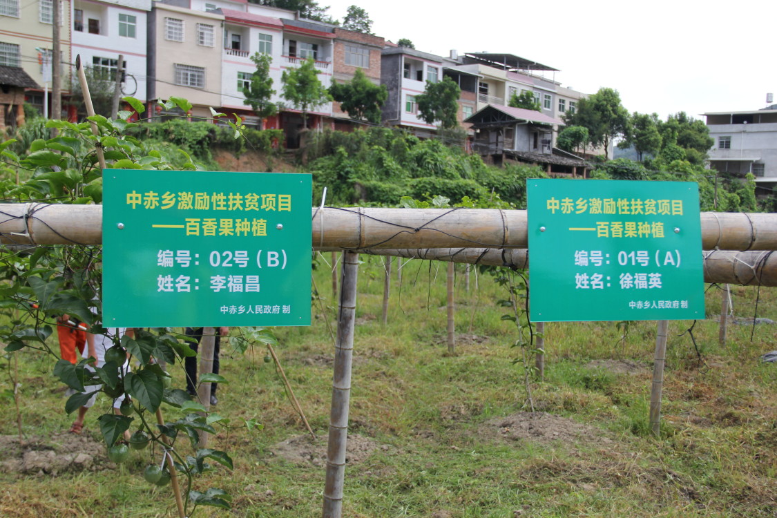 (图为黄金百香果农场划分名牌)