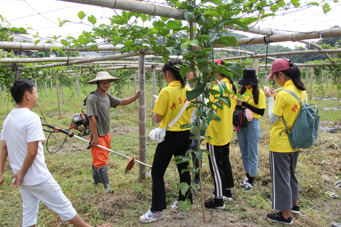 武平黄金百香果是厦门金砖五国会议接待水果之一,中赤乡壮畲村、万营村把握契机,合理推广百香果种植,助力扶贫工作,推行激励性扶贫重点项目之一。据悉,中赤乡党和政府为贫困户进行百香果的种植、培育、搭棚等技术培训。将黄金百香果种植基地合理划片分给贫困户进行管理,所获利润全部归为贫困户。壮畲村支委委员李华带领实践队调研黄金百香果种植基地情况,并咨询正在除草作业的贫困户李强坤,了解到政府将已经打造好的百香果农场通过抽签的方式划分给各个贫困户,同时采取激励政策,对认真管理、种植成效好的贫困进行一定的奖励措施。如今百香果正处于试挂果阶段,整个种植基地紧跟技术员的步伐,科学管理运营。