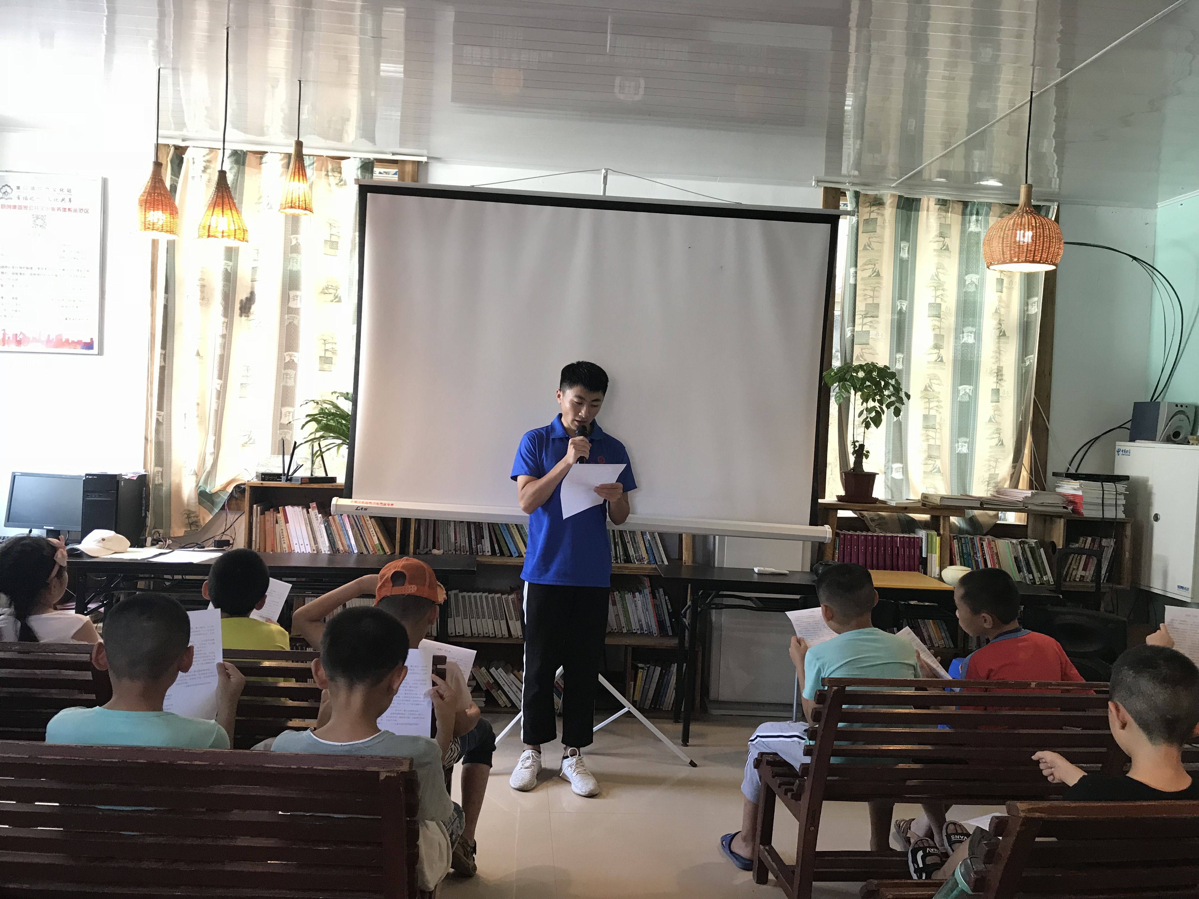 7月23日,beat365官方网站赴永泰嵩口飞虎实践队队员与指导老师分别对夏令营的小学生们进行诗歌朗诵以及合唱协助彩排。
