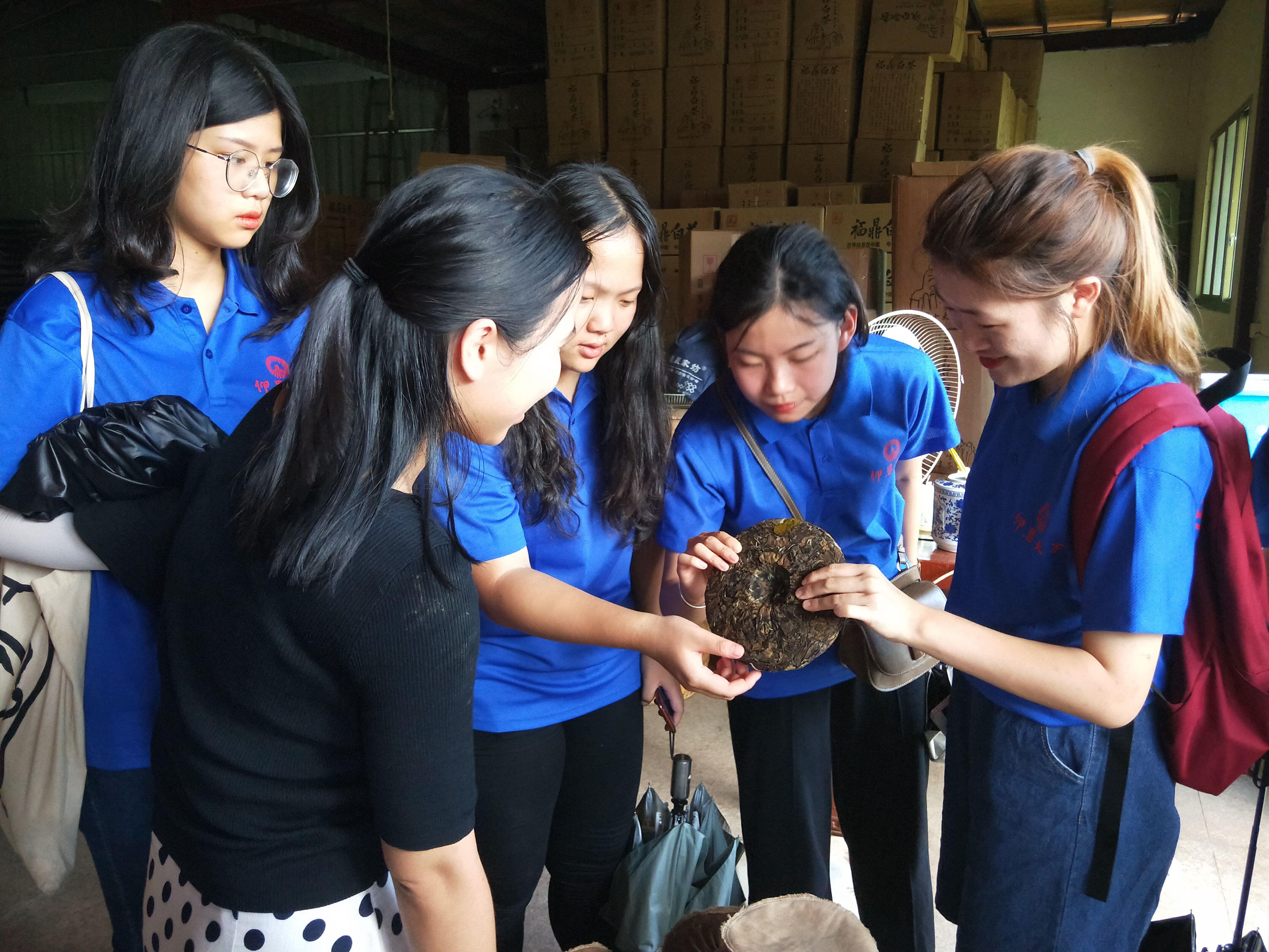 (图为实践队员参观茶饼)