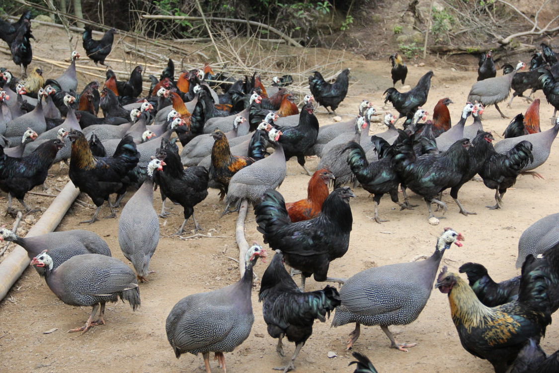 (图为五黑鸡、珍珠鸡)