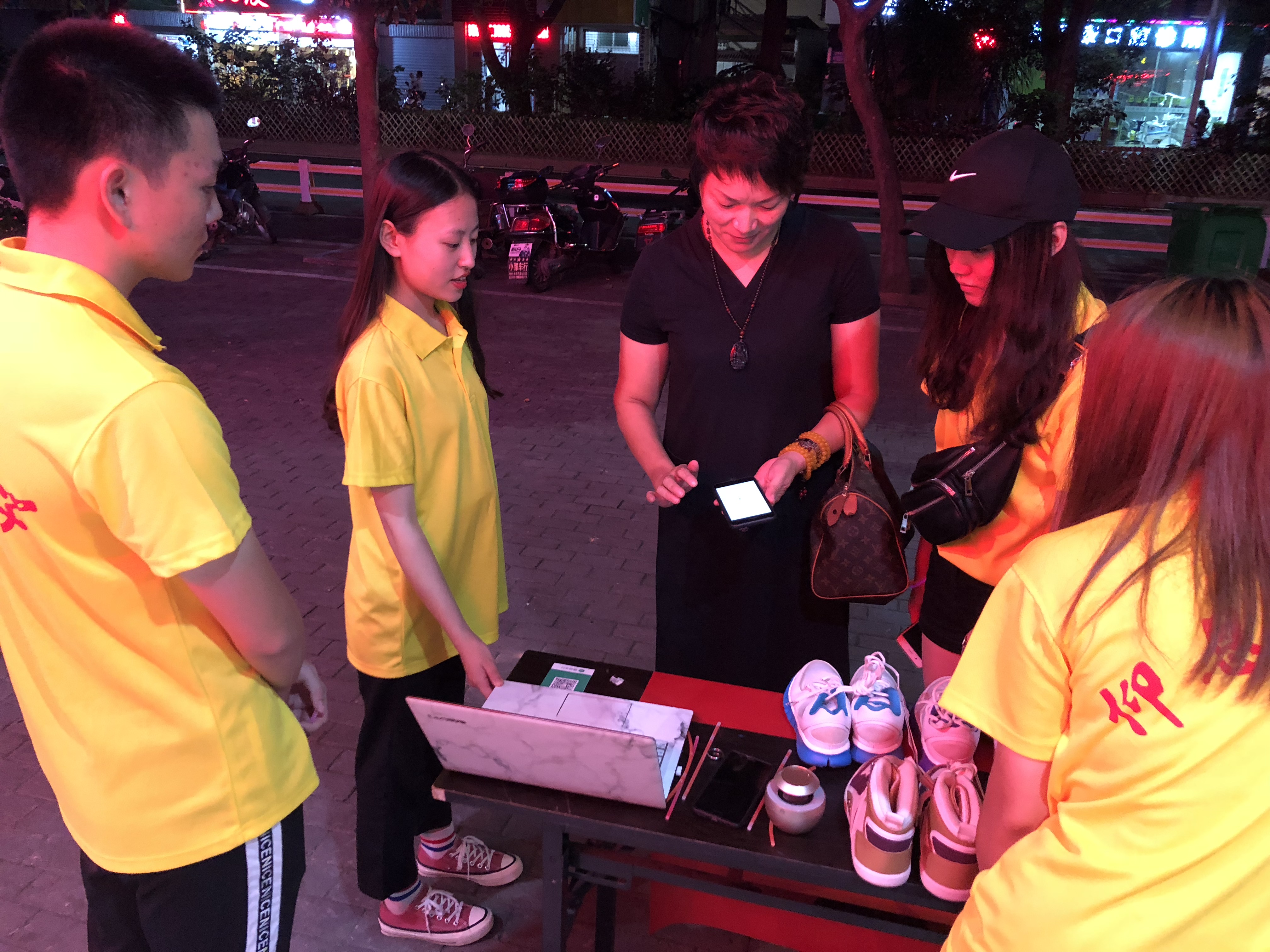 此次义卖的物资来源于各界社会爱心人士的捐赠。傍晚六点,实践队队员整合物资后到达南湖公园开展义卖活动。刚开始,义卖活动没有得到很好的反响,实践队队员在路口播放实践队走访贫困户行动的视频,为居民讲解爱心活动的意义,希望让更多有社会人士理解公益、力所能及帮助他人。不少爱心人士于横幅上签名,表示支持实践队的义卖活动。此次活动带动市民关爱社会弱势群体,不少市民慷慨解囊不留姓名,取得良好的社会影响。