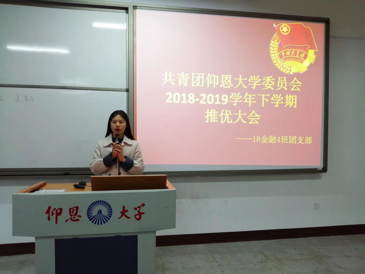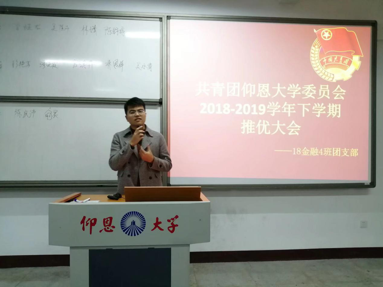 为培养和造就社会主义事业接班人,加强党员队伍建设,充实党的新生力量,3月7日下午四点十分18金融4班于仰恩楼B2-201教室开展了第二次入党积极分子推优大会。班主任何丽玲老师,辅导员林晓富老师出席本次会议,共有17名候选人参加此次推优。