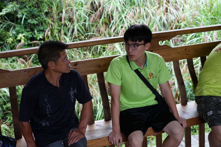 图二 副主任和队员们交流厦地古村的历史
