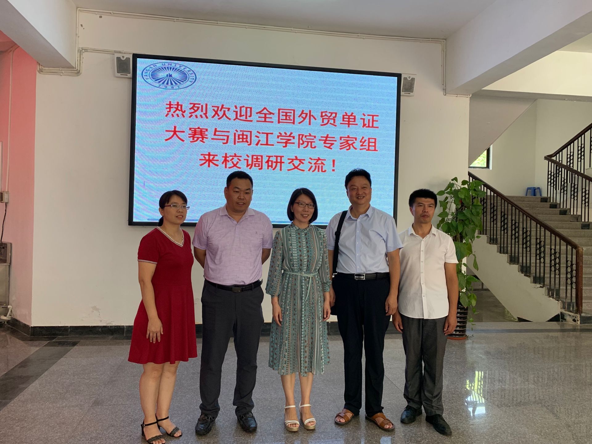 (图为专家组与我院参会领导合影) 此次调研,宋秀峰代表组委会肯定了我院此前在该赛事上的成就,希望双方能够在各项目上继续深入合作。调研活动中,双方就2020年第六届全国外贸单证岗位技能大赛内容和形式进行了探讨;同时就大赛组委会组织的校企合作项目、教师技能大赛等项目后续开展工作进行对接。