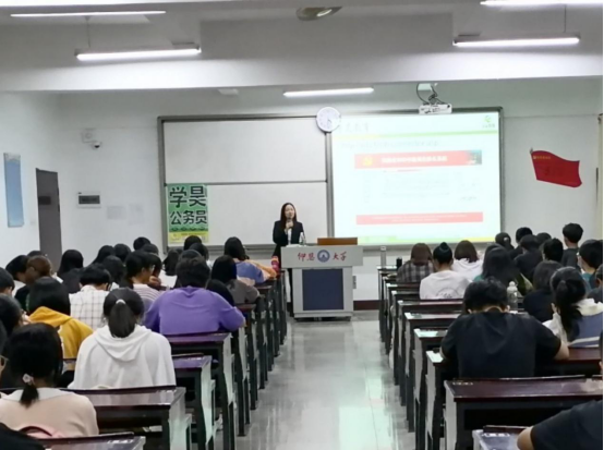 本次讲座以“了解选调,积极备考”为主题,为备考学生提供指导建议。会议开始,首先由张珣讲师向备考生介绍了选调生的定义和报考条件,并解释了选调生与公务员在培养方式、选拔方式、发展前景和培养措施等方面的区别。随后,张珣讲师介绍了选调生的备考技巧,重点讲解了申论考试的概括归纳、综合分析、提出对策、应用文和文章写作等五大题型,使在场的同学们明确了备考复习重点。