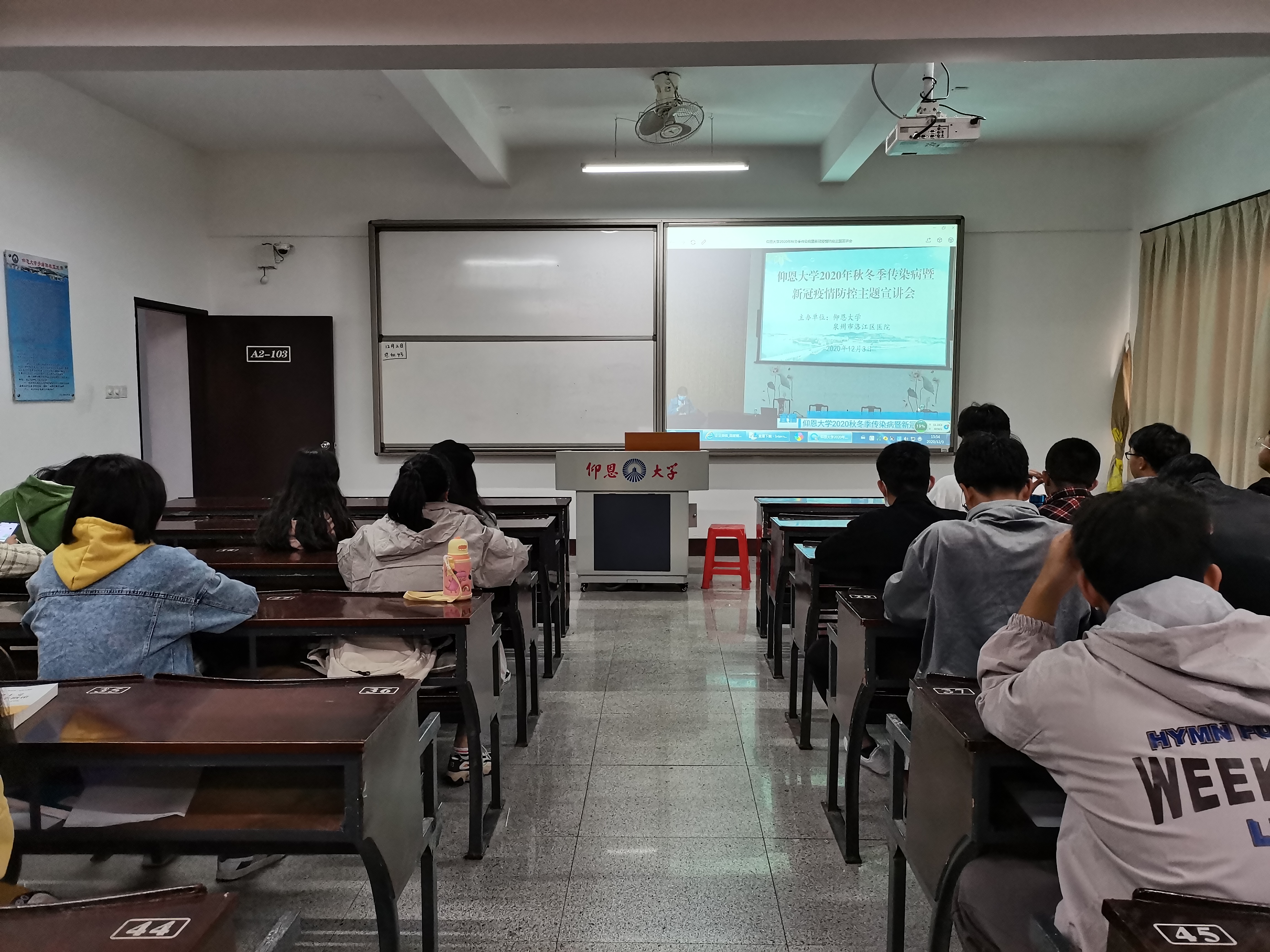 为了提高传染病预防水平,增强大学生传染病预防意识,2020年12月3日,由我校召开的“秋冬季传染病暨新冠疫情防控”主题班会于金融系、经济系、国际贸易与经济系各所在班级展开。本次班会由泉州市洛江区马甲镇医院医师主讲,参会人员为beat365官方网站全体学生。
