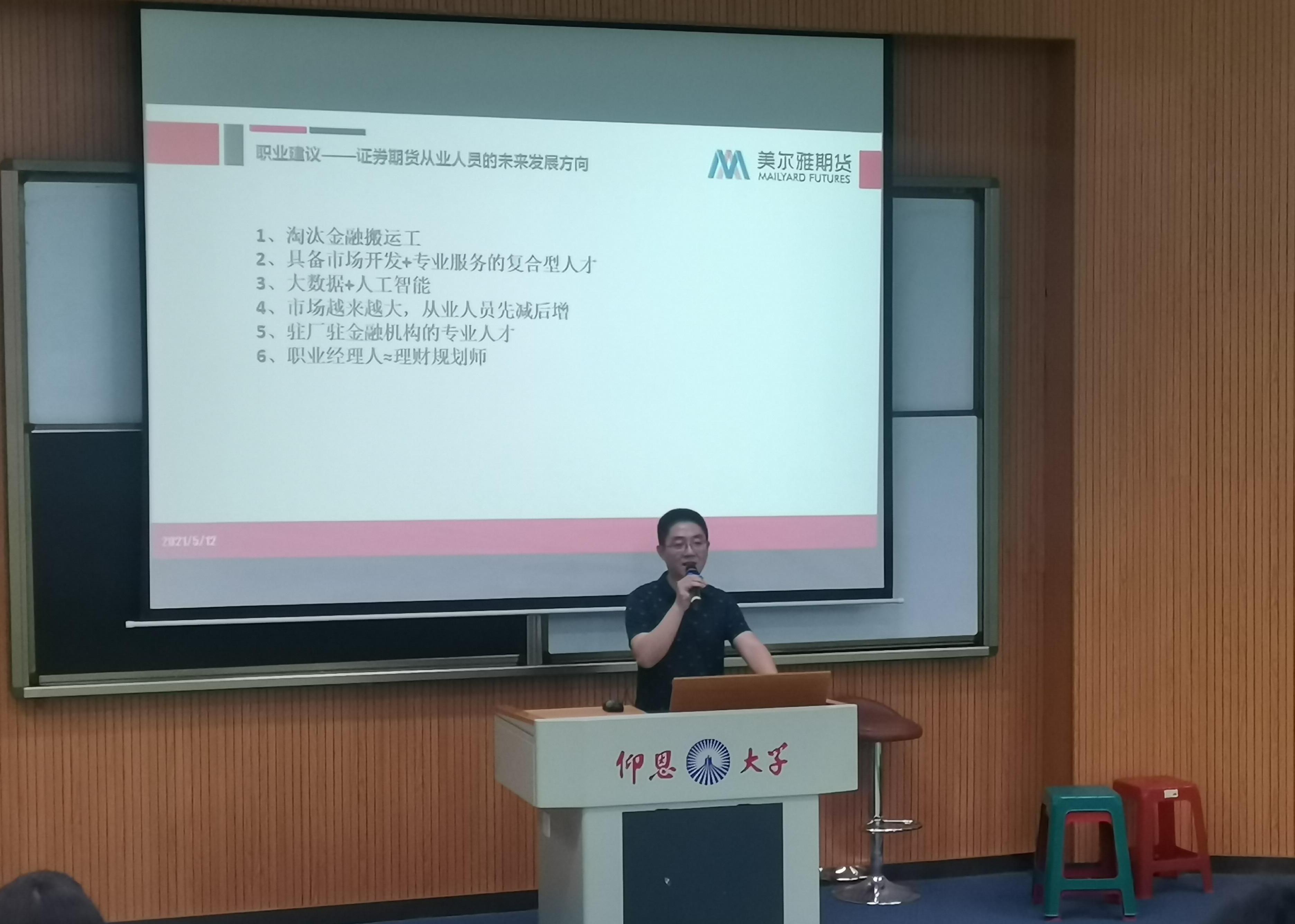 为进一步推进我院学生深入了解期货市场,5月12日下午2点50分,在新区和昌楼思齐大讲堂举办“期货市场分析及期货行业就业前景解读”讲座,讲座由美尔雅期货有限公司泉州营业部总经理、筹建者吴发炜先生主讲。beat365官方网站各支部党员、积极分子参加本次讲座。
