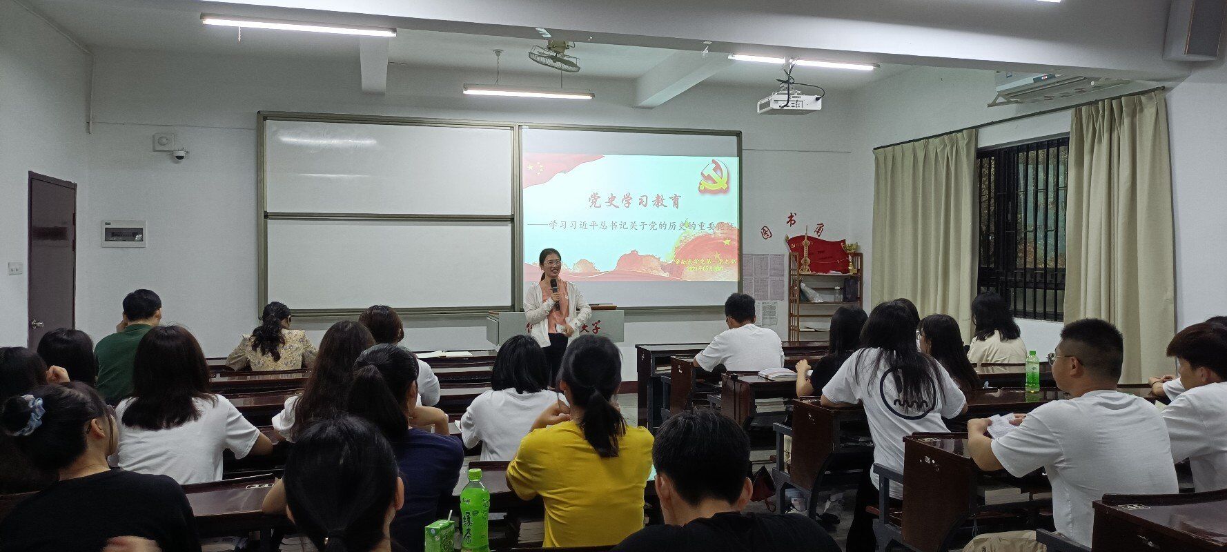 学习会伊始,支部书记孙保献为本次学习会发表讲话,说明了本次学习会的意义和流程。随后,各班学生党员代表依次上台发表了关于个人学习《习近平总书记关于党的历史的重要论述》的感悟,表明要在学习领悟中筑牢信仰之基,要在学习领悟中牢记初心使命,将更多理论付诸于日常学习生活中。最后,组织委员何丽玲对此次党史学习教育进行总结发言,她指出,党的历史是一本厚重的教科书,我们要从党的历史汲取智慧和力量,让党史的智慧和精神成为激励我们前行的强大力量之源。