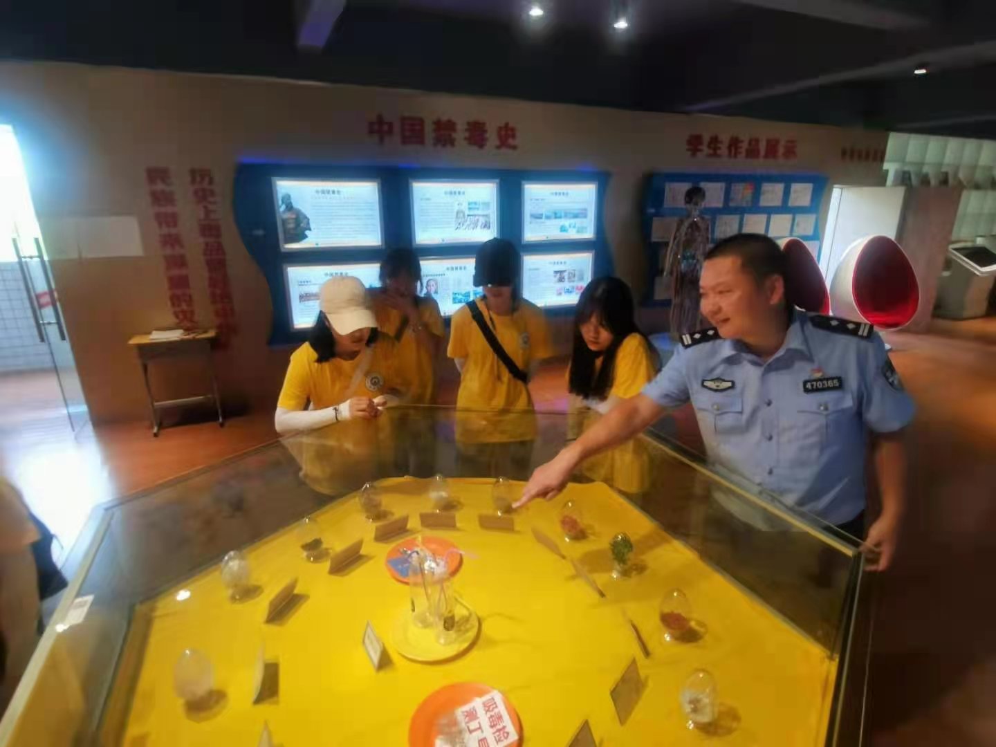 图1警员为实践队员们介绍毒品种类