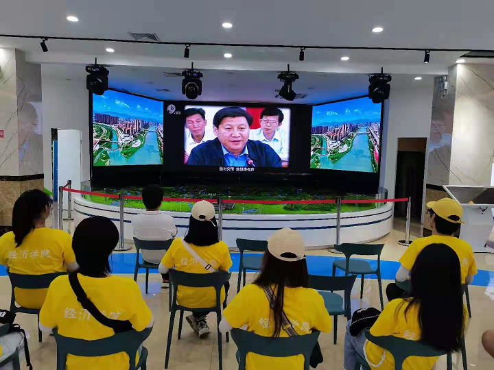 在展厅内,讲解员依次向实践队队员讲解了“科学决策,久久为功系民生”的治水理念、“综合治理,一张蓝图绘到底”的治水实践、“人水和谐,治水引来百业兴”的治水成效三个篇章,并通过多媒体及沙盘互动等技术向实践队队员介绍习近平总书记治理木兰溪的重要理念,帮助实践队队员了解仙游丰富的水文化、重大水利项目和木兰溪发展史。