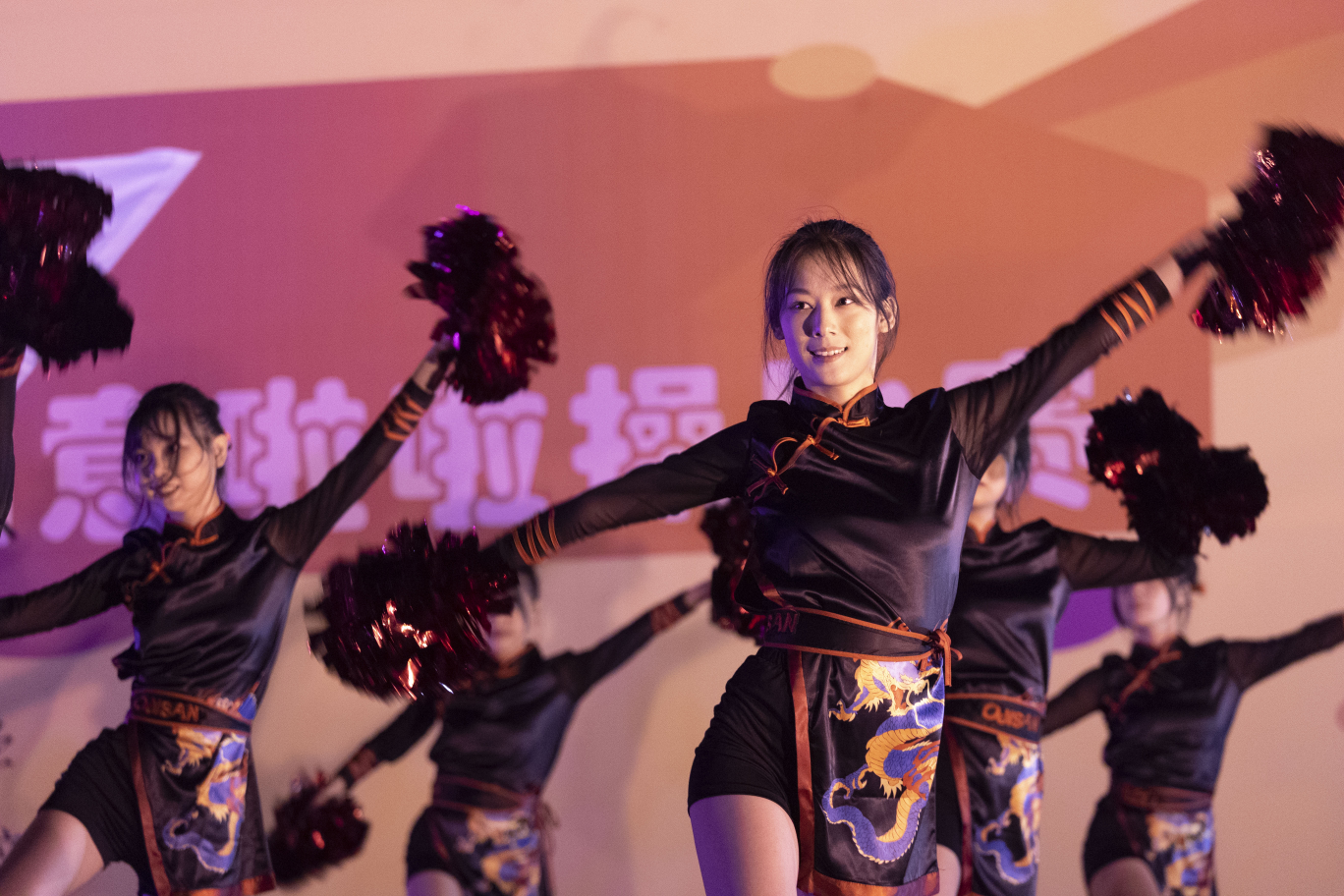 图2 财政学与金融学系决赛风采 11月4日晚,创意啦啦操比赛决赛开赛。决赛第一环节,财政学与金融学系和国际经济与贸易系分别于第二、第七位上场。其中,财政学与金融学系队员队服则为紫色调运动风,在活泼轻快的音乐下昂扬青春活力;国际经济与贸易系队员身着严肃的红黑色,以《大中国》为背景音乐,在观众合唱声中随韵律舞动。在随后的团队大比拼和随机舞蹈中,各队伍在灵动的乐章中舞动青春的旋律,用明快奔放的舞姿谱写昂扬的风采。