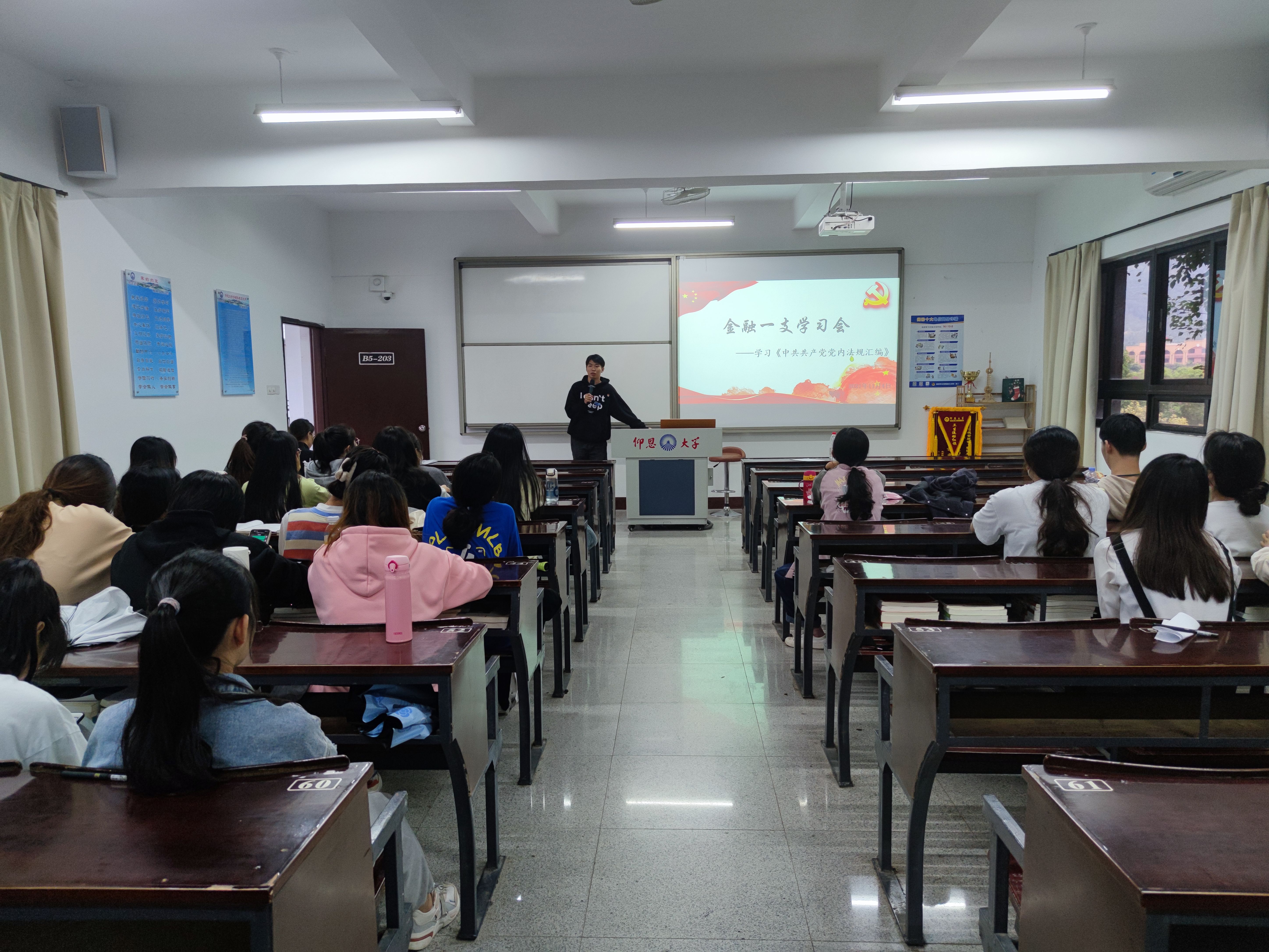 2021年11月4日下午4:30,beat365官方网站金融系第一党支部在仰恩楼B5-203开展《中国共产党党内法规汇编》学习会,学习在新时代的背景下不断完善的党内法规体系。参会人员有支部宣传委员詹奕椿老师、组织委员谢坤宏老师,支部全体党员以及19和20级积极分子。