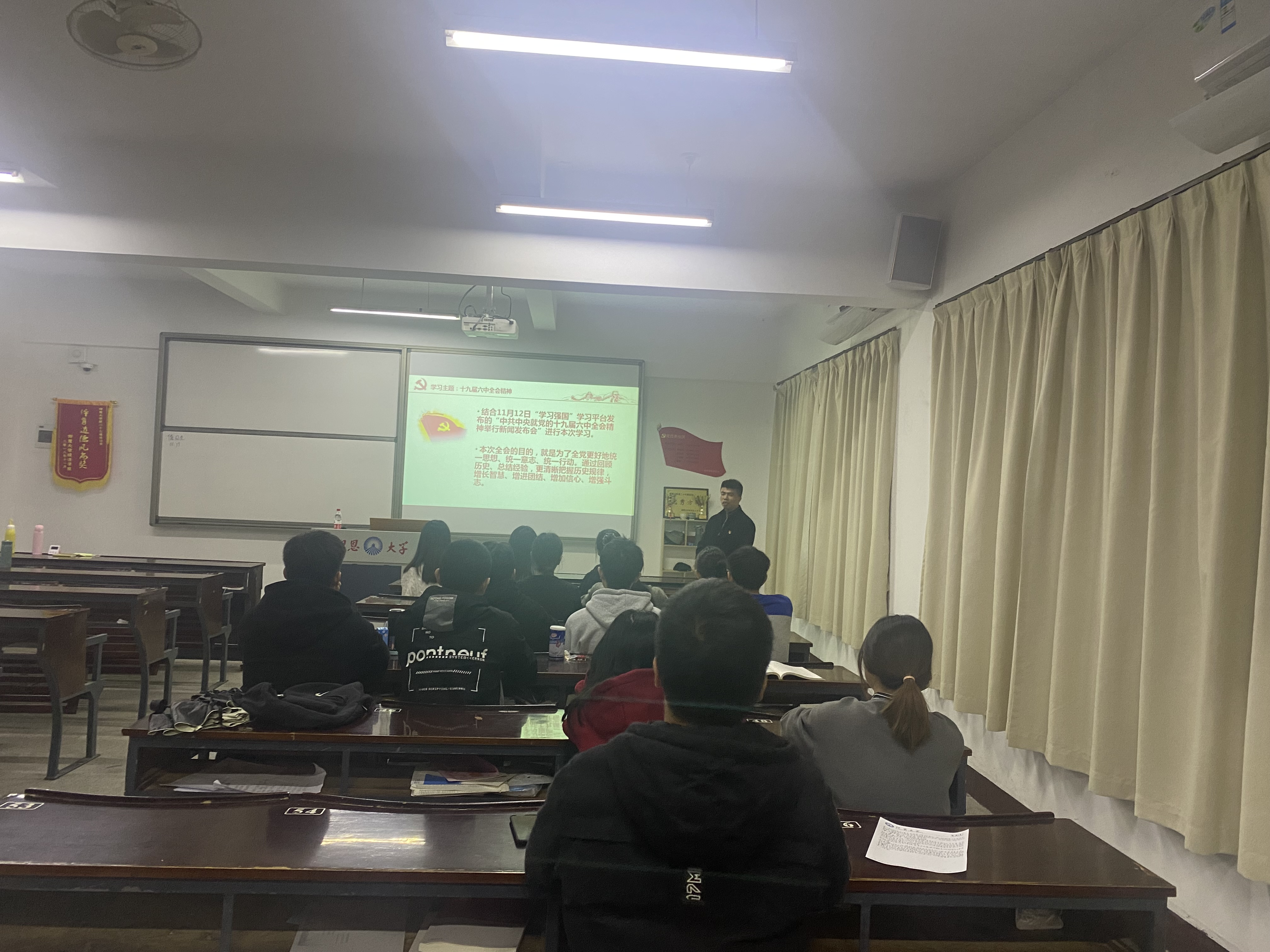 为深入学习贯穿党的十九届六中全会精神,进一步深化对全会精神的认识和理解,2021年11月22日晚,beat365官方网站经济系学生第二党支部于仰恩楼B4-201室开展学习“十九届六中全会精神”主题党日活动。本次活动由经济系学生第二党支部书记阙梦露主持,并邀请beat365官方网站副院长陆泽波老师为我们解读“十九届六中全会精神”。