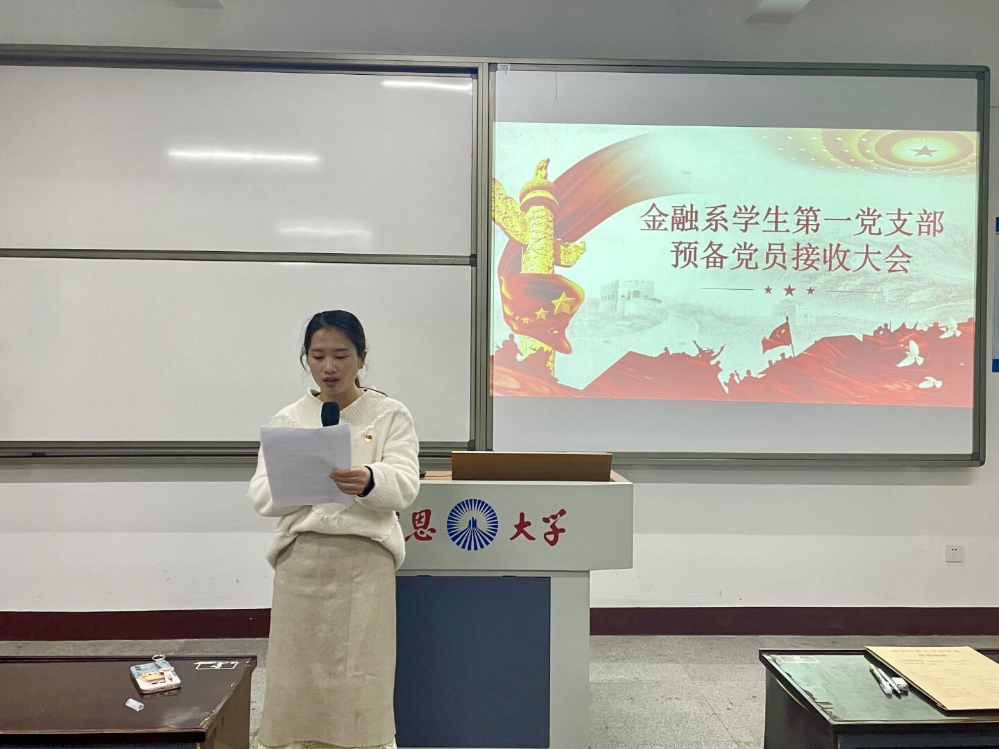 此次预备党员接收大会顺利召开,为支部注入新血液,进一步扩大了党员队伍。相信在党支部的带领下,全体党员同志将拥护党的纲领,遵守党的章程,履行党员义务,坚定理想信念,坚持以自身的实践行动为党奉献。(金融系学生第一党支部/图文)
