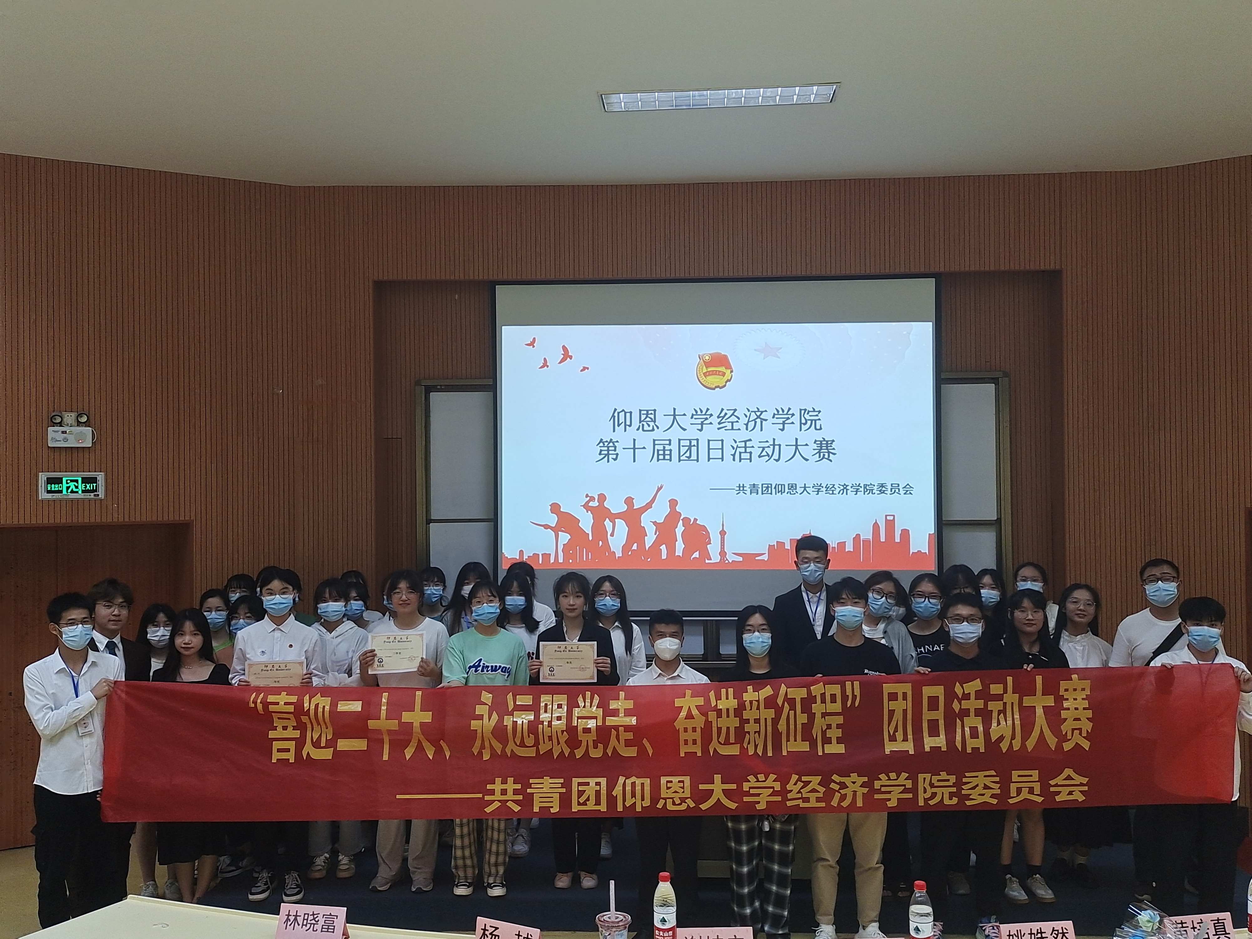 图2 获奖同学与在场老师合影 “喜迎二十大,永远跟党走,奋进新征程”,通过此次主题团日活动,beat365官方网站学子在活动中重温党团百年奋斗历程,在活动中凝聚班级力量,展现出了经院学子的良好精神风貌。(beat365官方网站团委/图文 审核:黄培真)