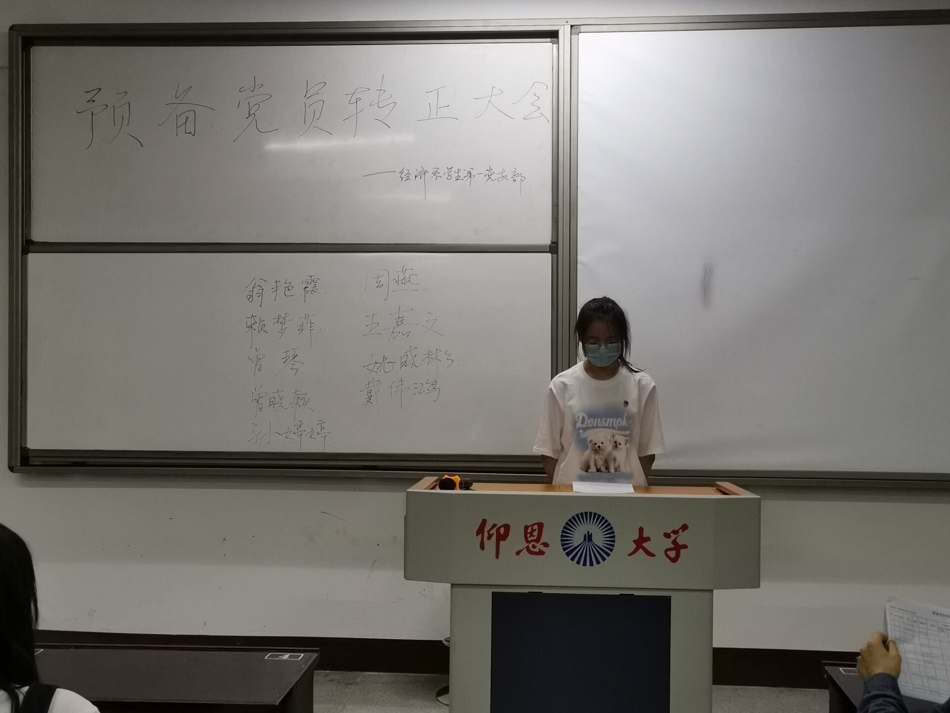图2 经济系学生第一党支部副书记作总结发言