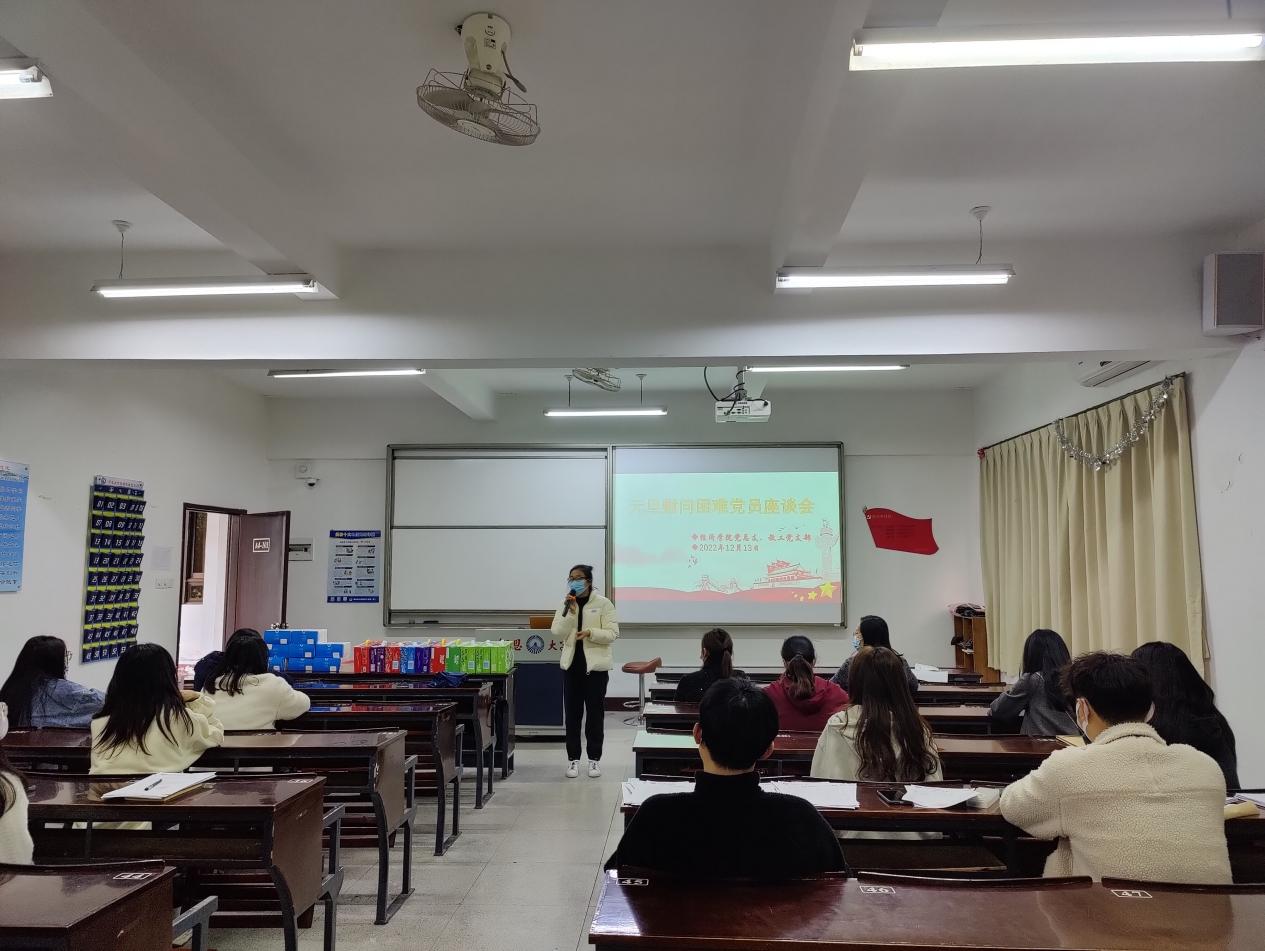 为扎实做好党内关怀工作,让我院困难学生党员切实感受到党组织的温暖。2022年12月13日下午,beat365官方网站党总支开展了慰问困难学生党员座谈会。beat365官方网站党总支书记吴晓伟老师,教工支部全体支委,及各学生支部书记出席此次座谈会。此次座谈会由beat365官方网站党总支副书记赖桂全老师主持。