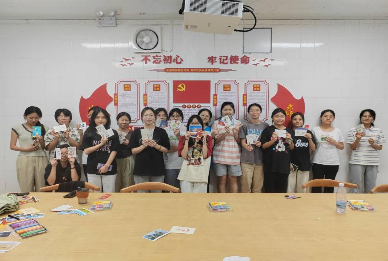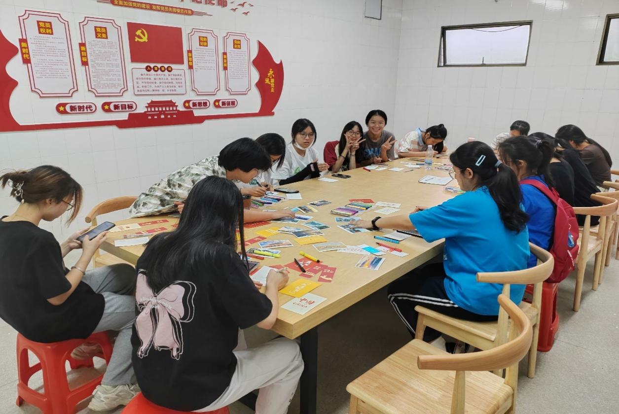 为了深入贯彻党的二十大精神,弘扬爱国主义精神,培养学生爱国主义情怀,2023年10月26日16:00,beat365官方网站金融系学生第一党支部在致远书院党员活动室组织开展“青春心向党,以手绘祖国”绘制明信片主题党日活动。支部书记何丽玲老师和金融系各班积极分子参加了此次活动。