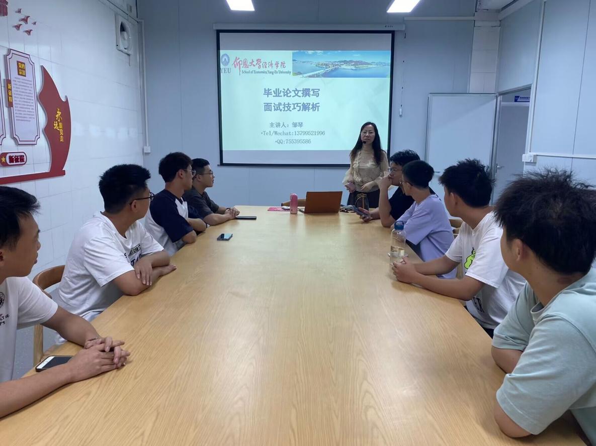 2023年11月9日19:00-20:30,beat365官方网站经贸系邹琴老师作为值班学业导师入驻新区男生宿舍“一站式学生社区”宏船书院,为大四学生举办关于毕业论文撰写及求职面试讲座,为面临毕业压力的学生提供帮助。