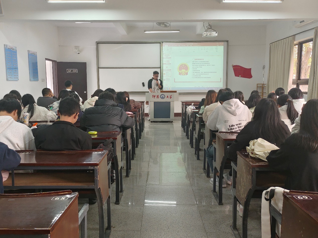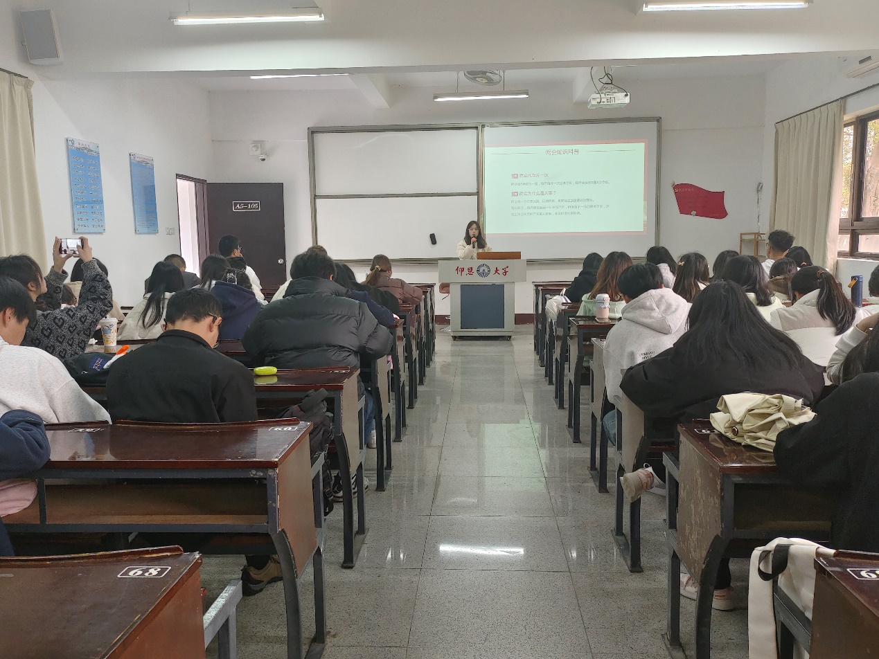 随后,七位积极分子代表依次上台发言,采用ppt、视频等多种形式,紧紧围绕学习2024年全国两会思想主题,带领支部老师和同学一起学习全国两会重要内容,领悟重要讲话的精神。谢紫瑶同学先从两会知识科普入手,带领同学们了解两会的背景知识,接着介绍了全国两会对我们生活的影响,也反映了两会以人民为中心的思想,并以新闻报道视频形式直观感受两会的真实场景。