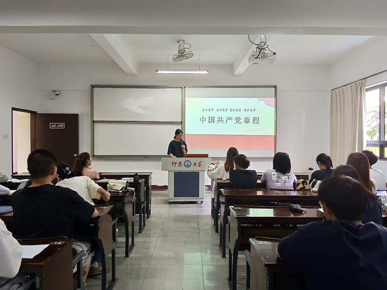 学习会伊始,由支部干事王鸿燕同学带领广大党员和入党积极分子学习《中国共产党章程》,从党章的发展历程、开篇概述、章节组成等部分进行深入剖析,指出党章学习的重要意义,并呼吁全体党员和入党积极分子切实做到深入学习党章、严格遵守党章和坚决维护党章。紧接着,支部干事林丽丽同学分享《中国共产党纪律处分条例》,提醒广大党员和积极分子要严守廉洁纪律,始终保持共产党人的政治本色。