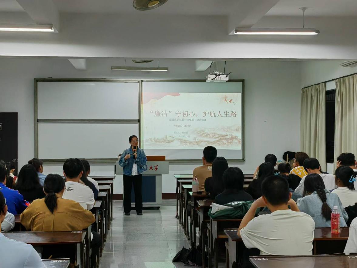 为深入学习贯彻习近平总书记关于加强党的纪律建设的重要论述,引导支部党员不断提高思想觉悟、精神境界、道德修养,提升党员队伍的整体素质和凝聚力,2024年5月23日晚上19:30,beat365官方网站金融系学生第一党支部在仰恩楼C2-303组织开展了“廉洁文化教育”专题党课。此次党课由支部书记何丽玲老师主讲,支部全体党员及各班入党积极分子参加了此次党课学习。