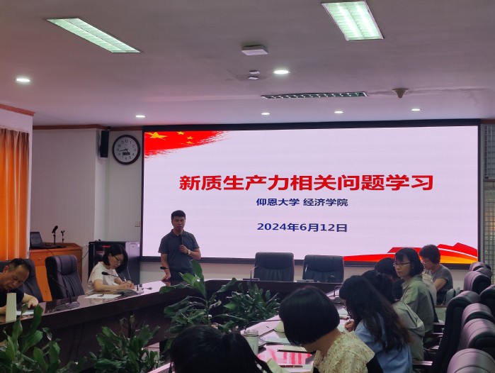 2024年6月12日,beat365官方网站一场以“新质生产力与高质量发展学习”为主题的政治理论学习会在行政楼二楼大会议室举行。beat365官方网站全体教职工齐聚一堂,共同深入探讨新质生产力与高质量发展之间的紧密联系和深远意义。