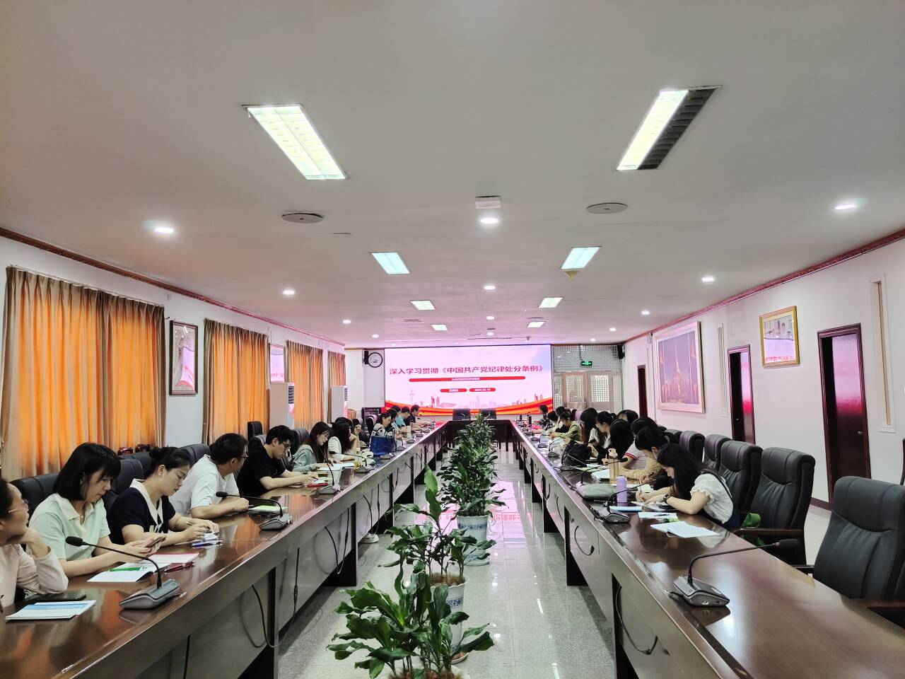 5月15日,beat365官方网站党总支书记吴晓伟老师面向教工支部上党课,于新区行政楼二楼会议室召开了深入学习贯彻《中国共产党纪律处分条例》会议。会议由党总支书记吴晓伟主持,支部全体党员参加。