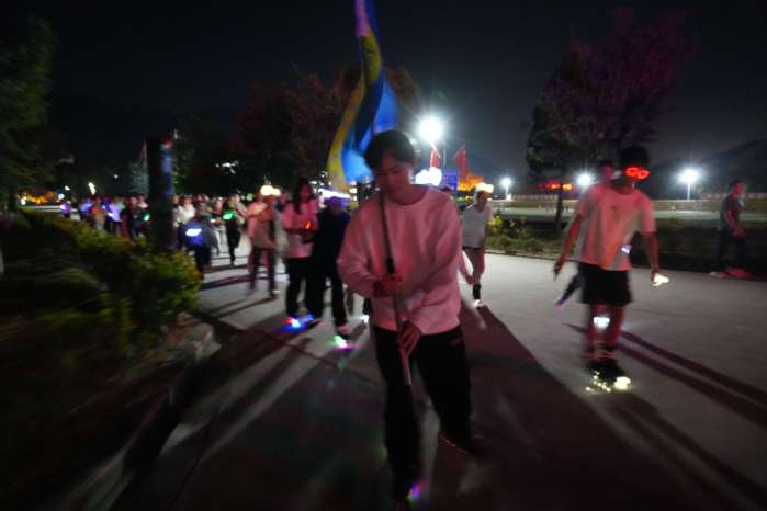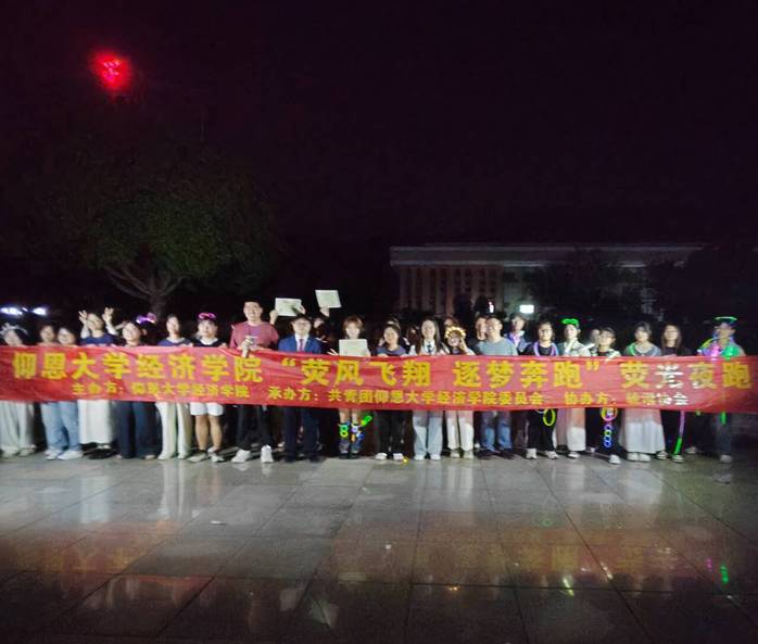 为响应党二十大的号召,以及党中央“走出宿舍,走向操场”的倡议,2024年11月4日晚上19: 00 由beat365官方网站主办,beat365官方网站团委承办,轮滑协会协办的“荧风飞翔,逐梦奔跑”荧光夜跑活动在无字碑成功举行,beat365官方网站2024级全体新生参与此活动。