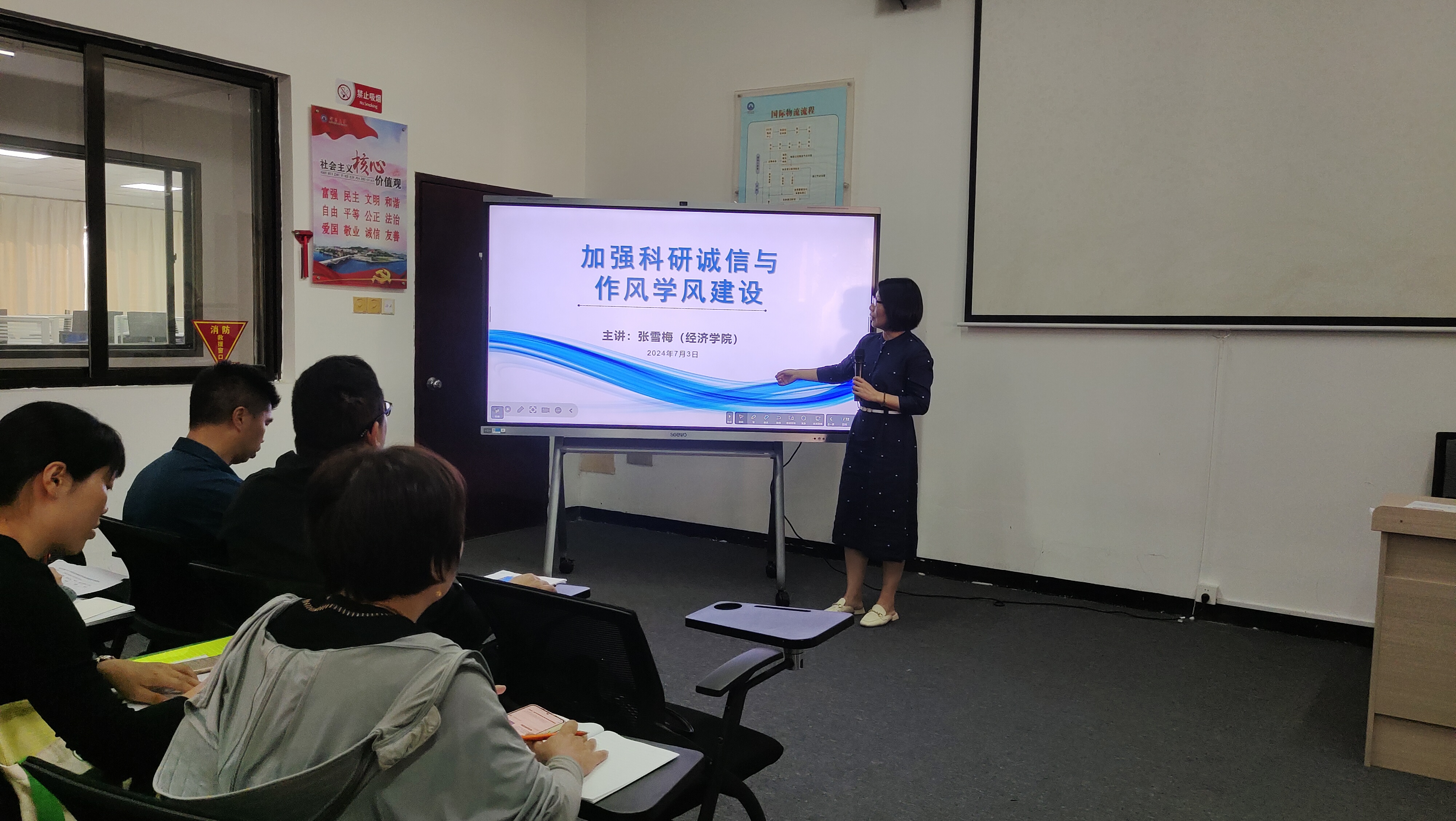为进一步加强科研诚信与作风学风建设,提升教职工的政治理论素养,于2024年7月3日下午,beat365官方网站在普照楼125教室组织全体教职工开展政治理论学习。本次学习活动由beat365官方网站院长张雪梅主讲,主题为“加强科研诚信与作风学风建设”。此次活动旨在通过深化理论学习,推动学院科研诚信和作风学风建设迈上新台阶。