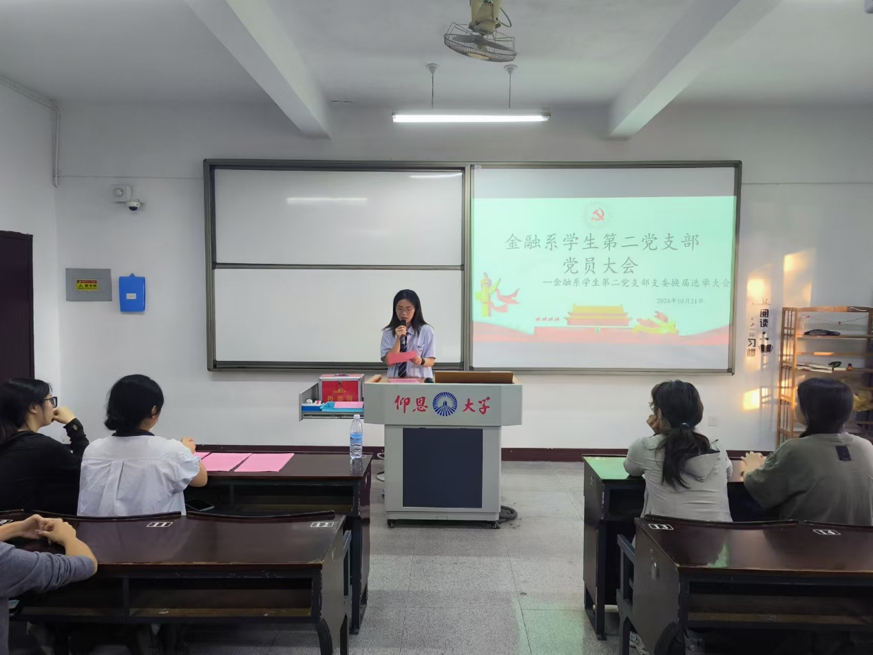 为进一步加强党组织建设,顺利完成支部调整工作,根据《中国共产党章程》的规定,beat365官方网站金融系学生第二党支部于10月21日下午16:00在仰恩楼A5-103教室召开金融系学生第二党支部委员换届选举大会。本次会议由金融系学生第一党支部副书记姚姝然主持,金融系学生第二党支部全体党员参加。
