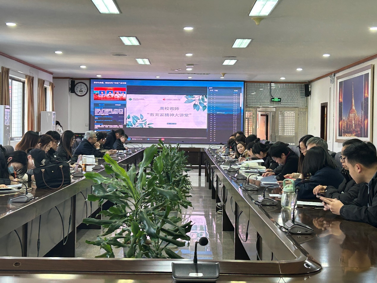 会议中,吴晓伟带领全体教师观看“坚守与奉献,做新时代‘四有’好老师”讲座。主讲人以一名优秀的教师要有哲学的思维、科学的判断、经验的转移、良好的品德修养为切入点,从哲学的思维阐述习近平总书记关于教育家精神的重要论述;新时代科学的判断、科学的发展和科技进步对高等教育的要求;取得的成就与成功经验总结三个方面为学员作专题辅导。通过学习,教师们深刻认识到,教育家精神不仅是对教师职业道德的高标准要求,更是推动教育事业发展的重要精神动力。
