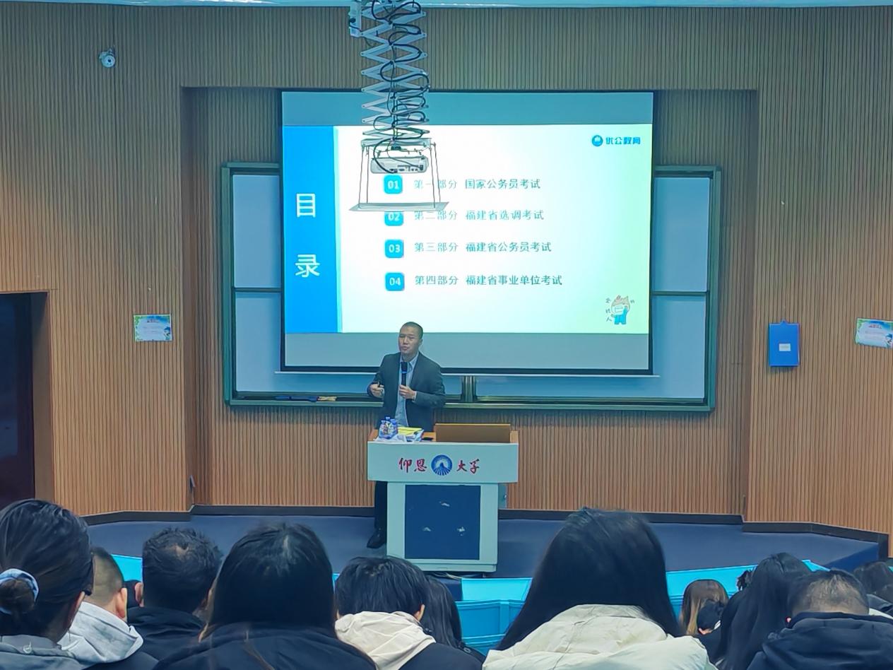 为助力beat365官方网站学子掌握有效备考策略,筑牢未来职业发展根基,2025年2月20日晚19点,beat365官方网站团委于和昌楼海纳讲堂成功举办2026届公职类考试备考规划讲座。此次讲座特别邀请优公教育的张老师担任主讲,给同学们提供了全面、专业的公职类考试备考指导。
