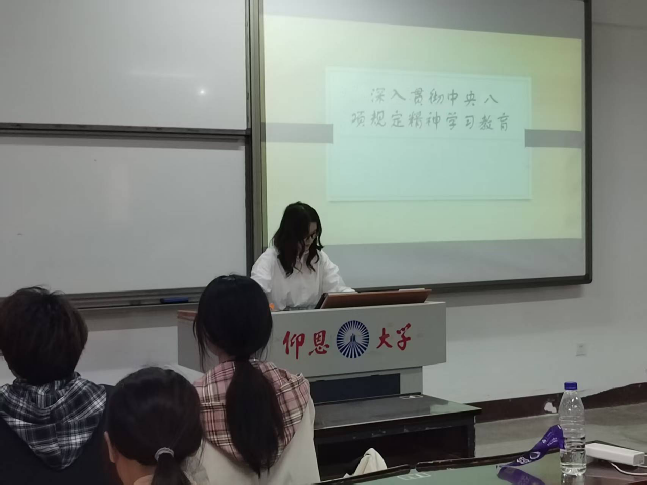 为全面深化中央八项规定精神学习教育,推动制度规范在学校落地生根、常态长效,切实将纪律要求融入教育教学各环节,持续巩固全面从严治党成果。2025年3月27日,经济系学生第一党支部在新区仰恩楼A5-103组织开展“深入贯彻中央八项规定精神学习教育”启动会。经济系学生第一党支部全体党员、入党积极分子参与本次会议。