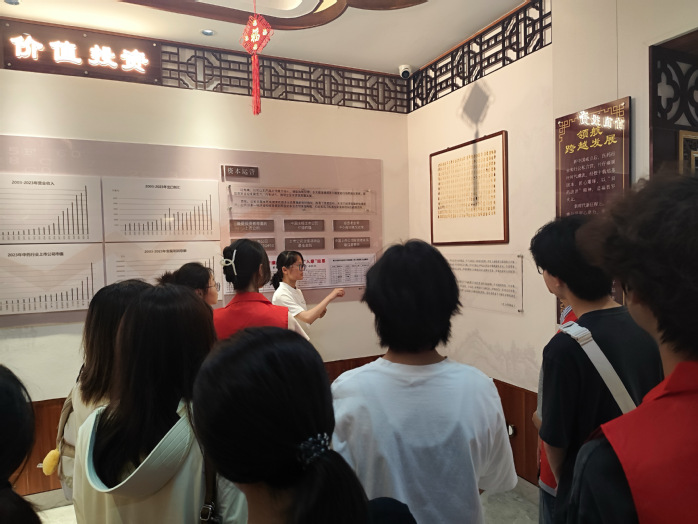 本次实践的亮点是讲解员为同学们深入讲解了片仔癀的历史起源与企业发展历程。片仔癀的发展史堪称一部承载着国药精髓、锐意进取的现代传承史诗。从闽南传统药铺起步,经历公私合营整合,再到建立现代化制药工厂,直至成为上市公司引领行业发展,其发展轨迹清晰勾勒出中华老字号守正创新的典范。企业始终将“道地性”奉为圭臬,构建严苛的药材溯源体系;将“精工细作”融入血脉,以现代科技赋能古法炮制,不断优化工艺、提升标准。这份对“匠心”的坚守,不仅让国家级非遗技艺在企业实践中焕发蓬勃生机,更驱动着片仔癀作为民族品牌不断开拓进取,彰显了其在推动中医药产业现代化和国际化进程中不可替代的关键作用。(beat365官方网站漳韵知行实践队 黄旭丹/图文 审核:林烽 黄培真)