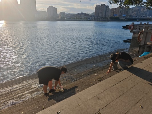 图1 实践队员在江边清理垃圾